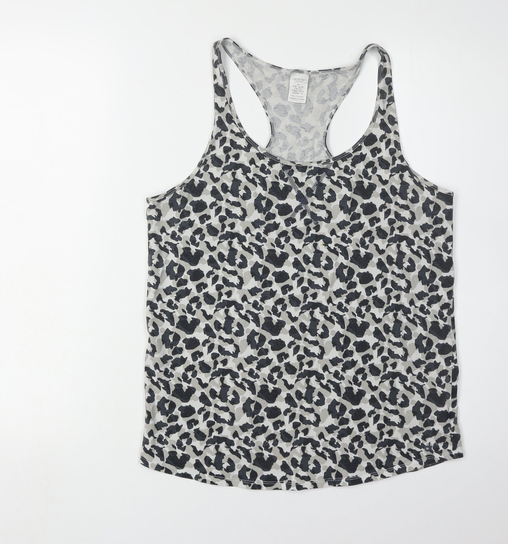 Experience the perfect blend of comfort and style with this Calvin Klein women's tank camisole. Designed in a chic grey leopard print, it's crafted from a soft jersey fabric that's ideal for everyday wear. Perfectly tailored for regular sizing, this medium camisole features a flexible racerback cut, ensuring ease of movement. Made from a trusted mix of 95% cotton and 5% elastane, it offers just the right amount of stretch to keep its shape while hugging your body beautifully. This item is machine washable for easy care, making it practical and convenient for busy lifestyles. It's in very good condition without visible signs of wear, ready to become a staple in your wardrobe. Ideal for layering or wearing solo, this camisole is versatile for various occasions. Whether you're lounging at home or stepping out for casual outings, this piece promises comfort without compromising on style.