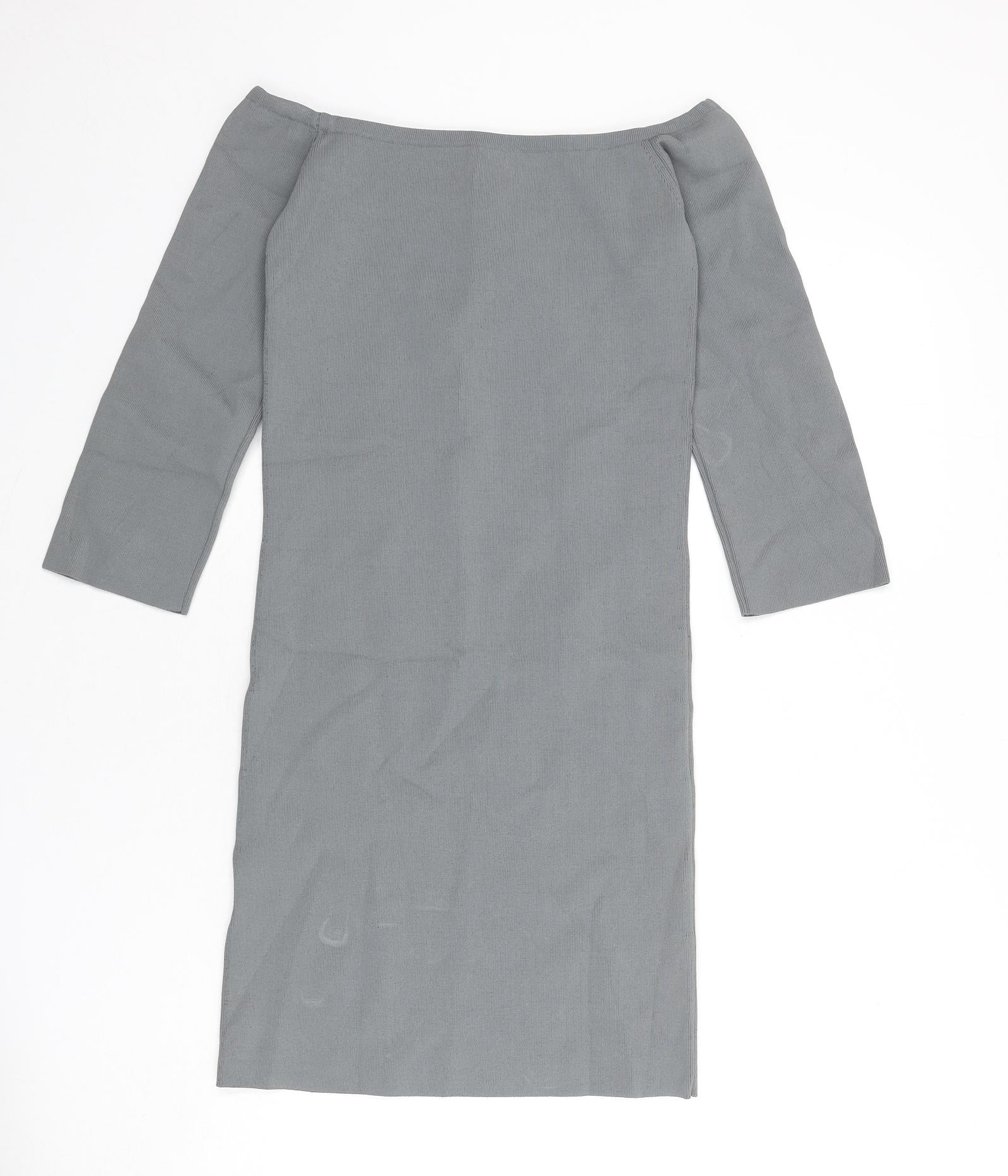 Womens Grey Viscose Bodycon Size M Off the Shoulder Pullover - Ribbed