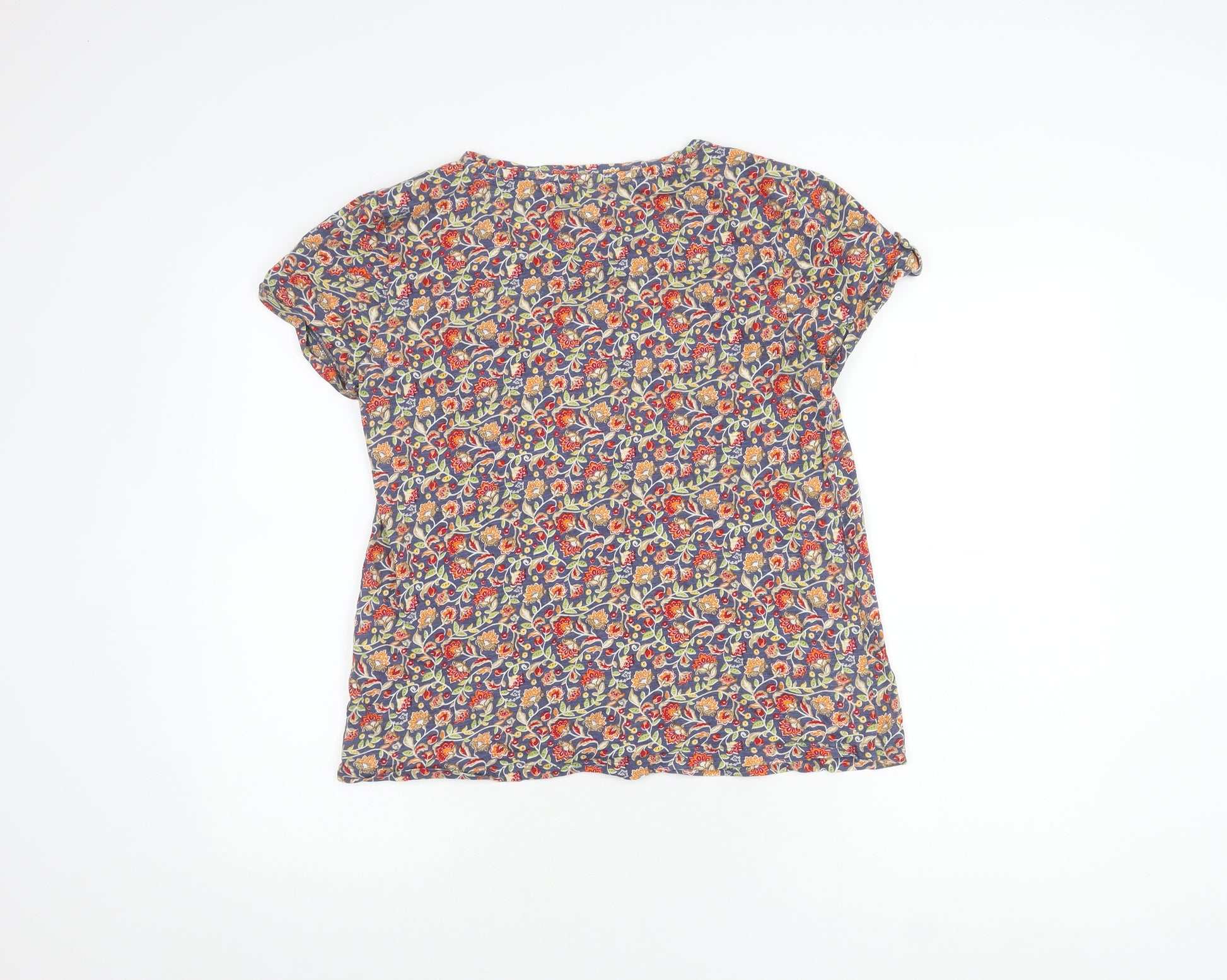 Add a vibrant touch to your casual wardrobe with this Cambridge Dry Goods Women's Multicoloured Floral T-Shirt. Perfect for those relaxed, casual days, this short-sleeve tee features an eye-catching floral pattern that adds a splash of colour to any outfit. Crafted from soft, breathable 100% cotton jersey, the lightweight fabric ensures comfort throughout the day. Designed with a classic crew neckline and a regular fit, this versatile T-shirt easily complements your favourite jeans or shorts. This T-shirt offers a timeless aesthetic with its beautiful multicoloured design, adding a stylish flair that will stand out in any setting. Easy to maintain, this machine washable tee ensures that you stay looking fresh with minimal effort. Despite being pre-owned, it remains in excellent condition without visible wear or damage. Perfect for everyday wear, this chic T-shirt will quickly become a staple in your wardrobe. Ideal for women who appreciate comfort, style, and a pop of colour, make a statement without sacrificing comfort. Whether you're running errands or meeting friends for coffee, this T-shirt ensures you look and feel great all day long.