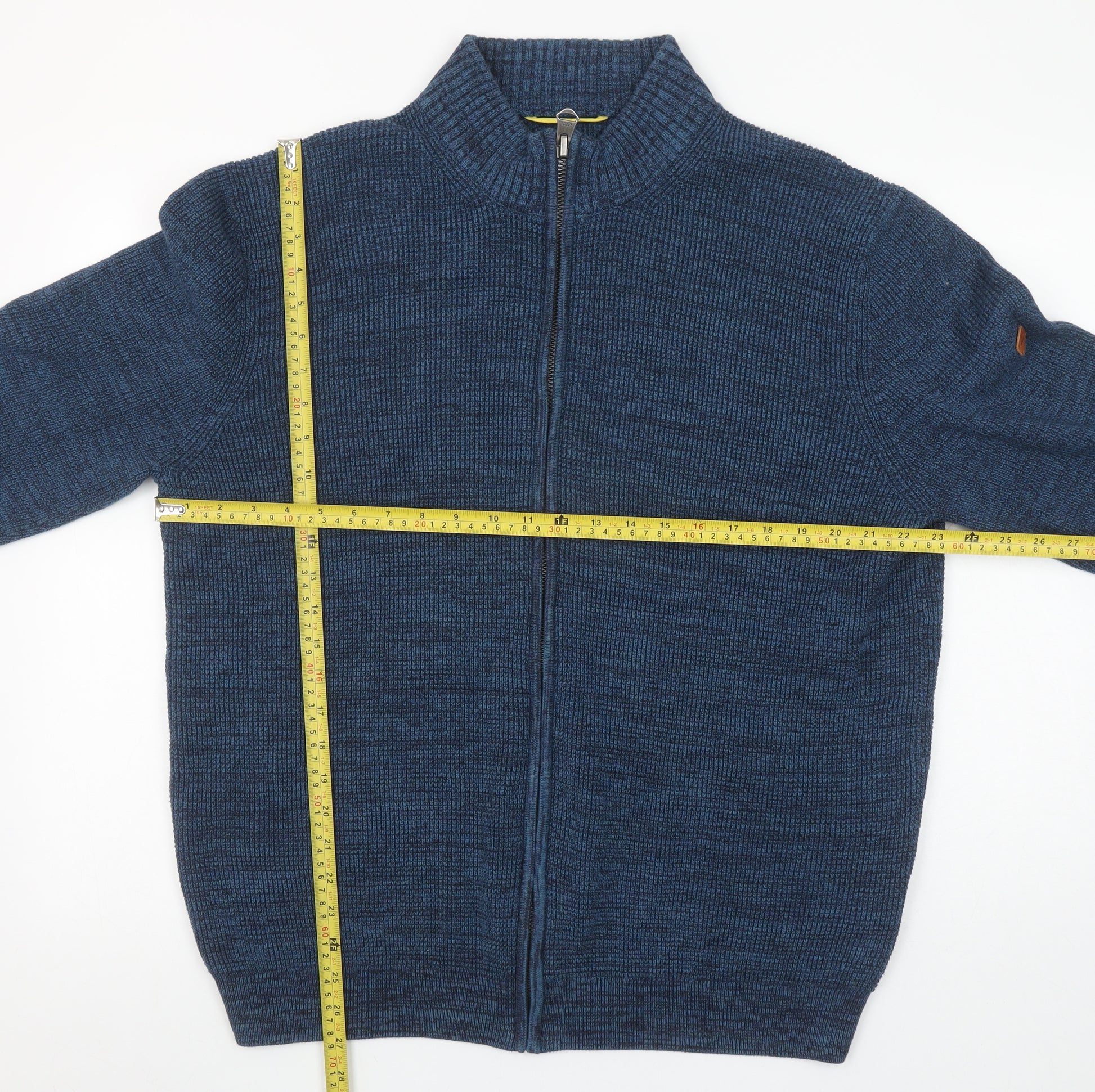This Camel Active men’s full zip jumper in size 2XL is a versatile and stylish choice for the cooler months. Crafted from a soft and durable blend of 60% cotton and 40% acrylic, the jumper offers a comfortable fit that balances warmth with breathability. Presented in an attractive blue colour, its high neck design and tightly knit texture provide both refined style and functionality, making it a perfect layering piece for autumn and winter looks. The full zip front allows for easy wear, while ribbed cuffs and hem create a neat, snug silhouette that retains its shape. Designed with a regular fit, this jumper is ideal for casual wear — whether paired with jeans for everyday outings or layered over a shirt for a more polished yet relaxed appearance. The understated aesthetic and lack of pattern make it a timeless wardrobe essential, suitable for men who appreciate practical elegance. Made to Camel Active’s renowned quality standards, this jumper promises lasting comfort and durability. The cotton-rich fabric feels gentle against the skin, while the acrylic component adds resilience to help maintain its form through repeated washes. Easy to care for and machine washable, it’s a fuss-free garment that supports an effortless lifestyle. In excellent pre-owned condition, showing only light wear with no damage or significant signs of use, this blue full zip jumper remains fresh and ready to wear. It embodies a balance of casual style and everyday usability — an essential midweight knit that transitions smoothly from outdoor adventure to relaxed weekends. For the modern man seeking comfort, quality, and simplicity, this Camel Active jumper makes a reliable addition to any wardrobe.