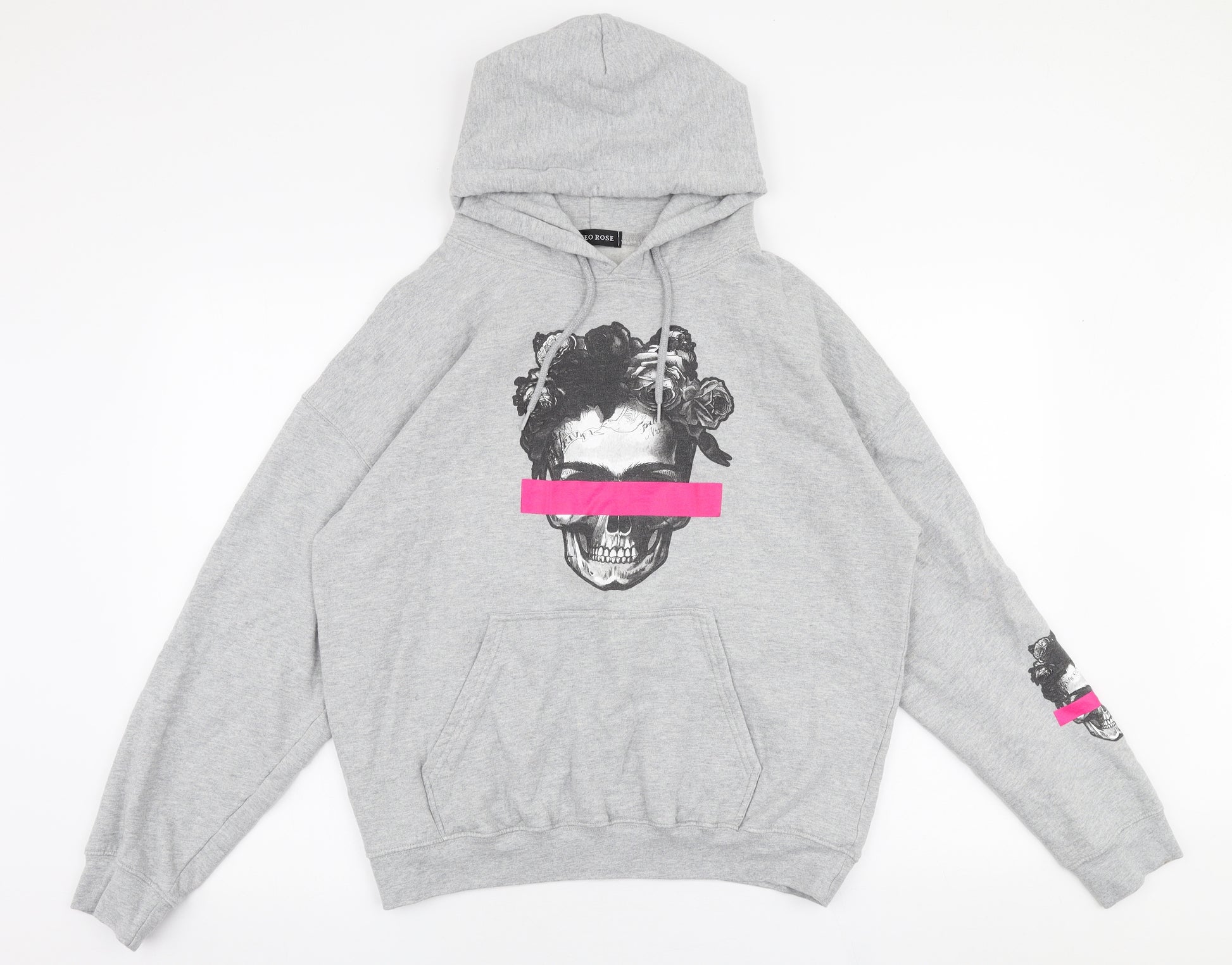 Mens Grey Cotton Pullover Hoodie Size S - Skull