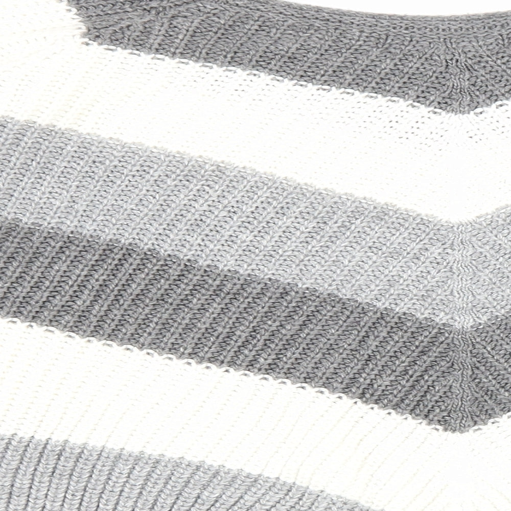 Womens Grey Round Neck Striped Acrylic Pullover Jumper Size L