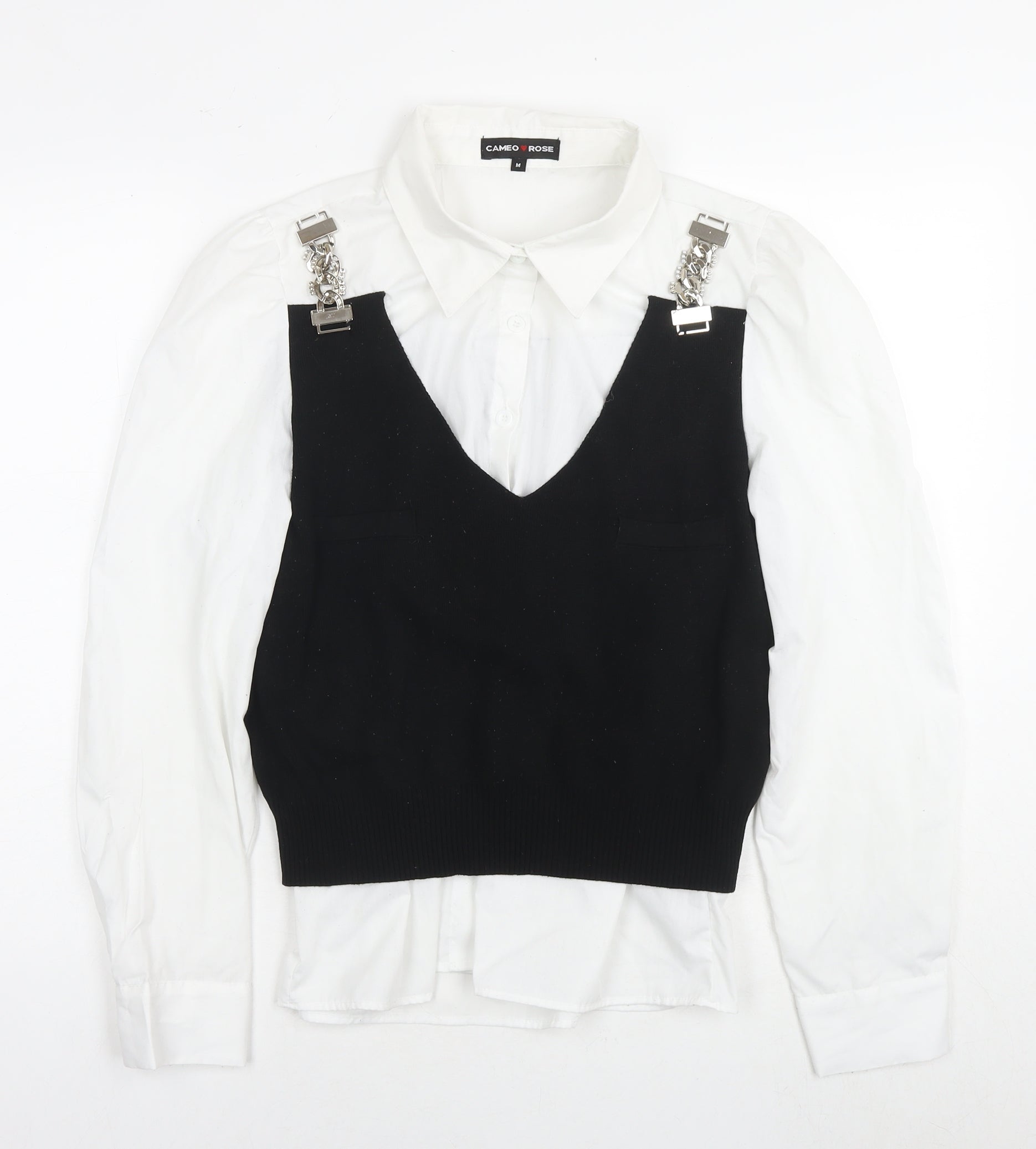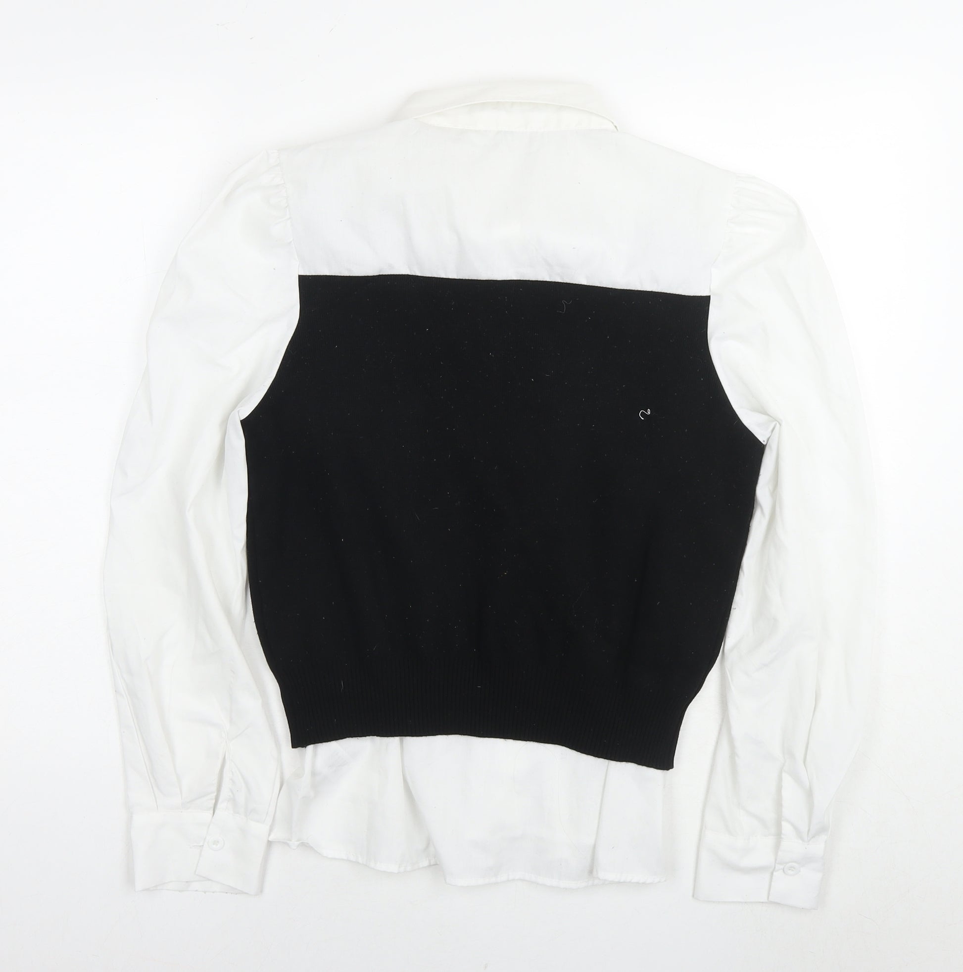 Womens White Viscose Basic T-Shirt Size M Collared - Jumper/Chain Effect