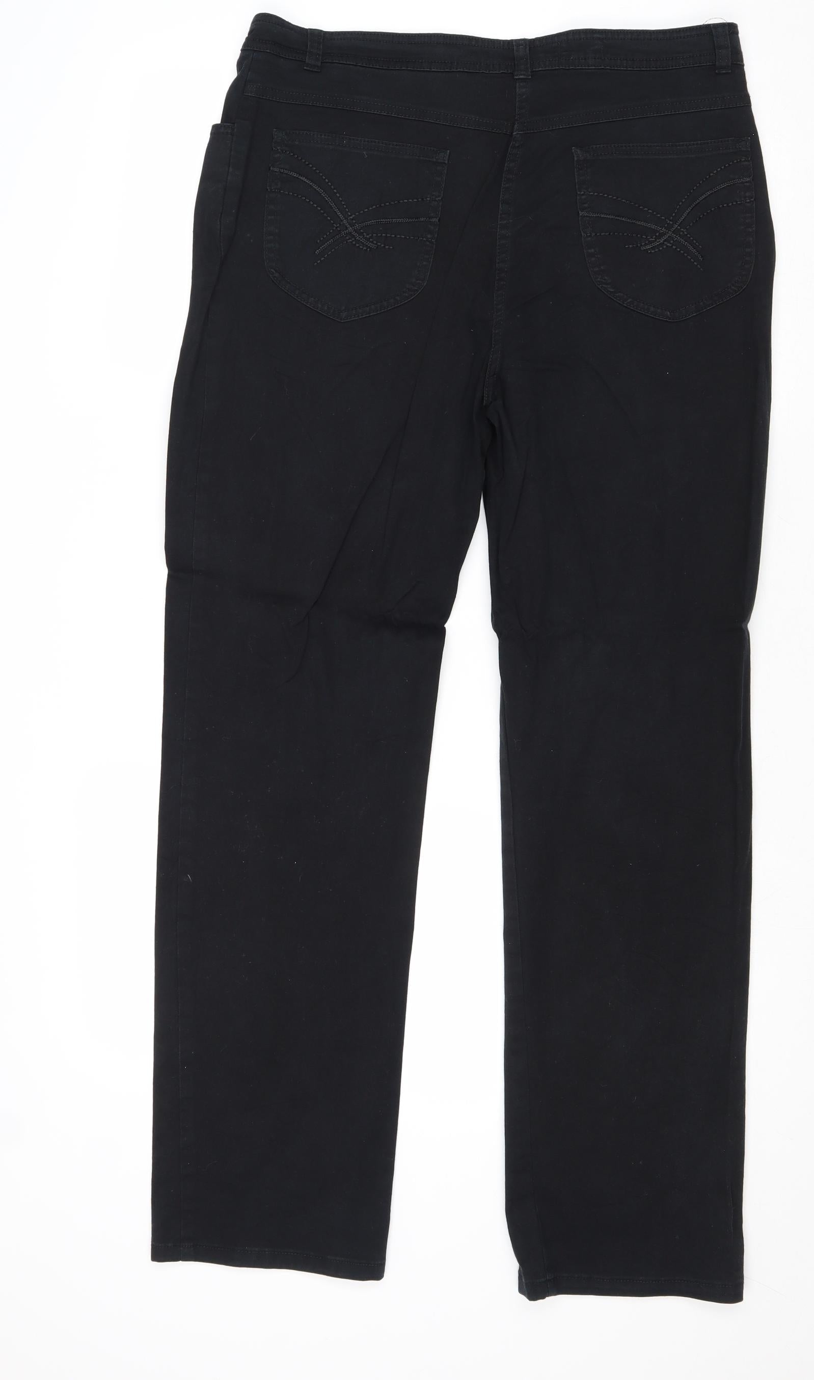 Womens Black Cotton Straight Jeans Size 16 Regular Zip