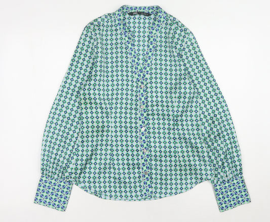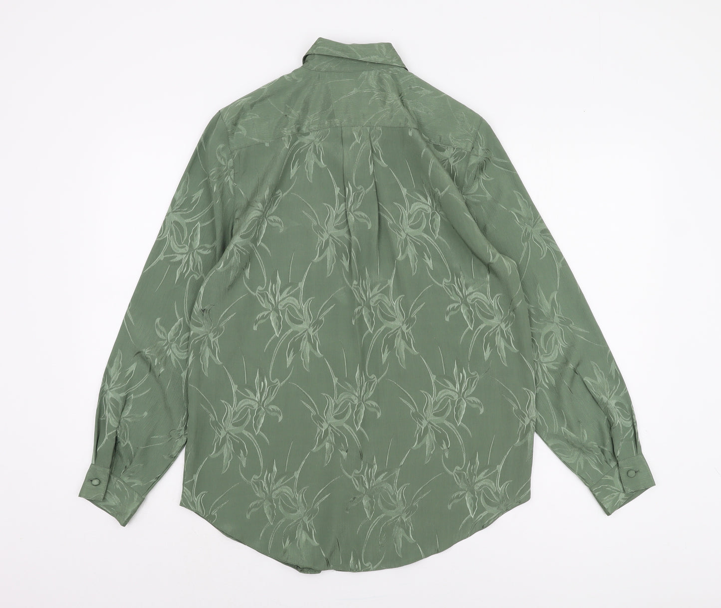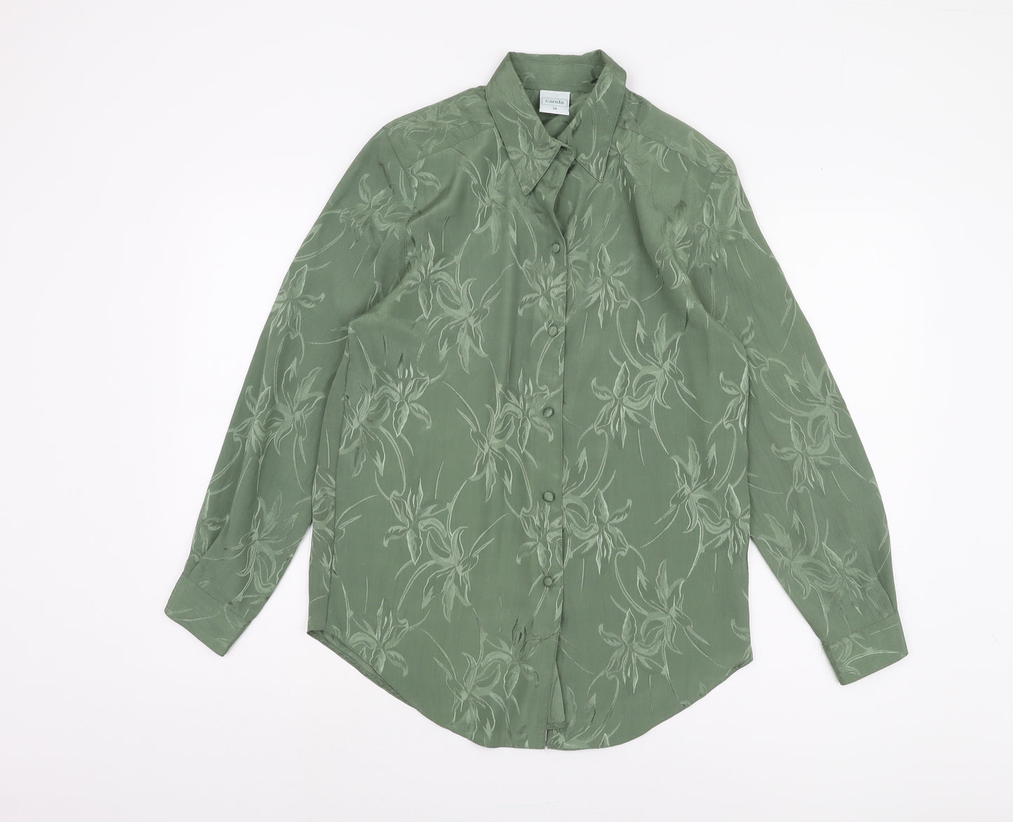 Elevate your wardrobe with this elegant Canda Button-Up Shirt, perfect for any stylish woman. This exquisite piece features a timeless floral pattern in a vibrant green hue, designed to make a statement. Ideal for women seeking a blend of comfort and style, it boasts long sleeves and a classic collared neckline, making it suitable for both casual and work settings. Crafted for the modern woman, this shirt exemplifies understated elegance and versatility. Wear it to a casual lunch or pair it with tailored trousers for a more formal look. This is a must-have addition to your collection, reflecting your sophisticated and chic taste.