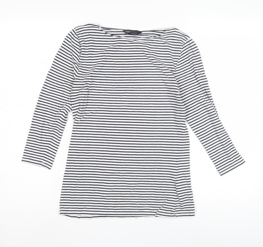 Regular price£14.75£1475Regular priceUnit price / perSale price £14.75 GBPNext Women Blue Striped Boat Neck Cotton 3/4 Sleeve Top UK 10