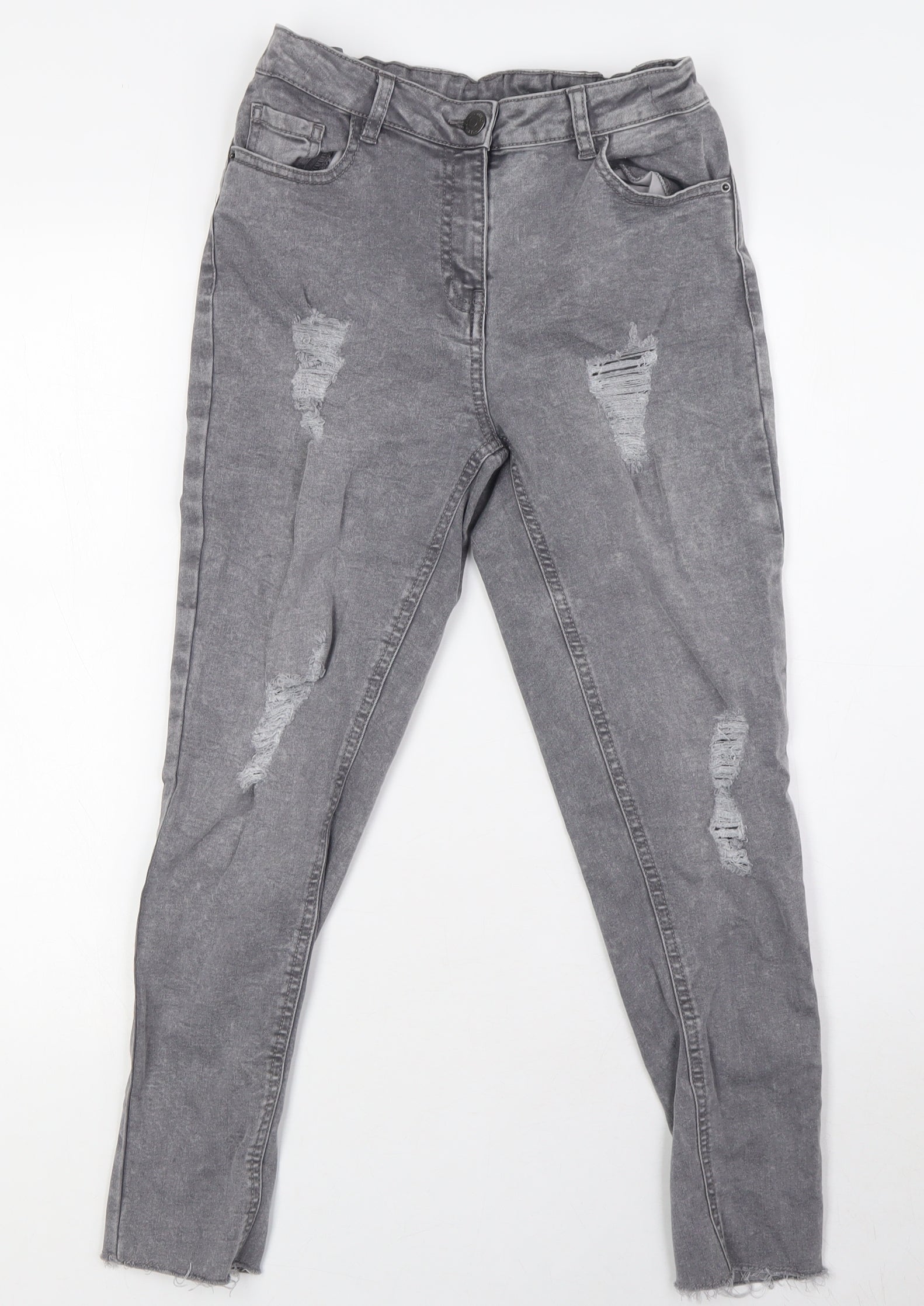 Boys Grey Cotton Skinny Jeans Size 12 Years L25 in Regular Zip - Destressed