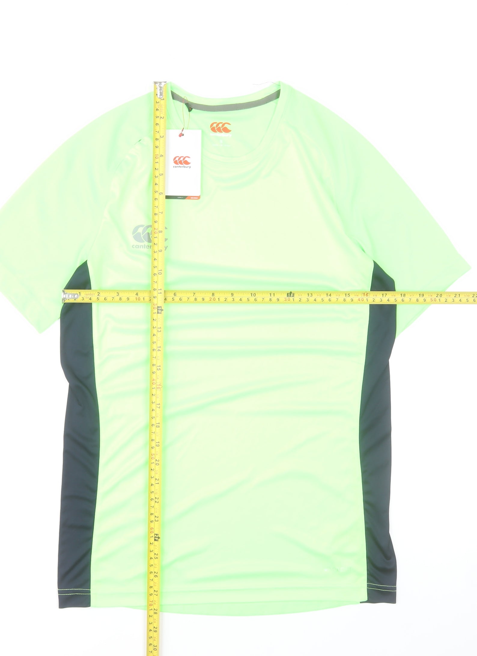 Get ready to perform your best in this Canterbury Men's Green Athletic T-Shirt. Crafted with precision and designed for athletes, it’s made from high-quality 100% polyester for a lightweight and breathable finish. The fabric features moisture-wicking technology to keep you dry and comfortable during high-intensity sessions, while the soft jersey texture and athletic fit ensure a full range of movement whether you’re training, running, or playing rugby. Featuring Canterbury’s iconic logo on the chest, this top blends simple style with high-performance practicality. The short sleeves and classic crew neck design enhance ventilation, making it perfect for workouts in warmer months or as a base layer in cooler weather. The solid green colour with contrasting side panels gives it a modern and sporty look, adding visibility and flair. Built to endure frequent washing and wear, it’s machine washable and quick-drying for ultimate convenience. Ideal for gym sessions, rugby training, or casual sport-inspired wear, this activewear top offers durability, comfort, and style in perfect measure. Stay cool, confident, and fully supported in every activity with this versatile Canterbury performance T-shirt — the ideal addition to any fitness wardrobe. Whether you’re hitting the field, the gym, or the track, this athletic essential ensures comfort and performance come together effortlessly. Perfect for men who value quality sportswear with a professional edge, this Canterbury top brings together functional design and premium fabric performance, making it a must-have for active lifestyles.