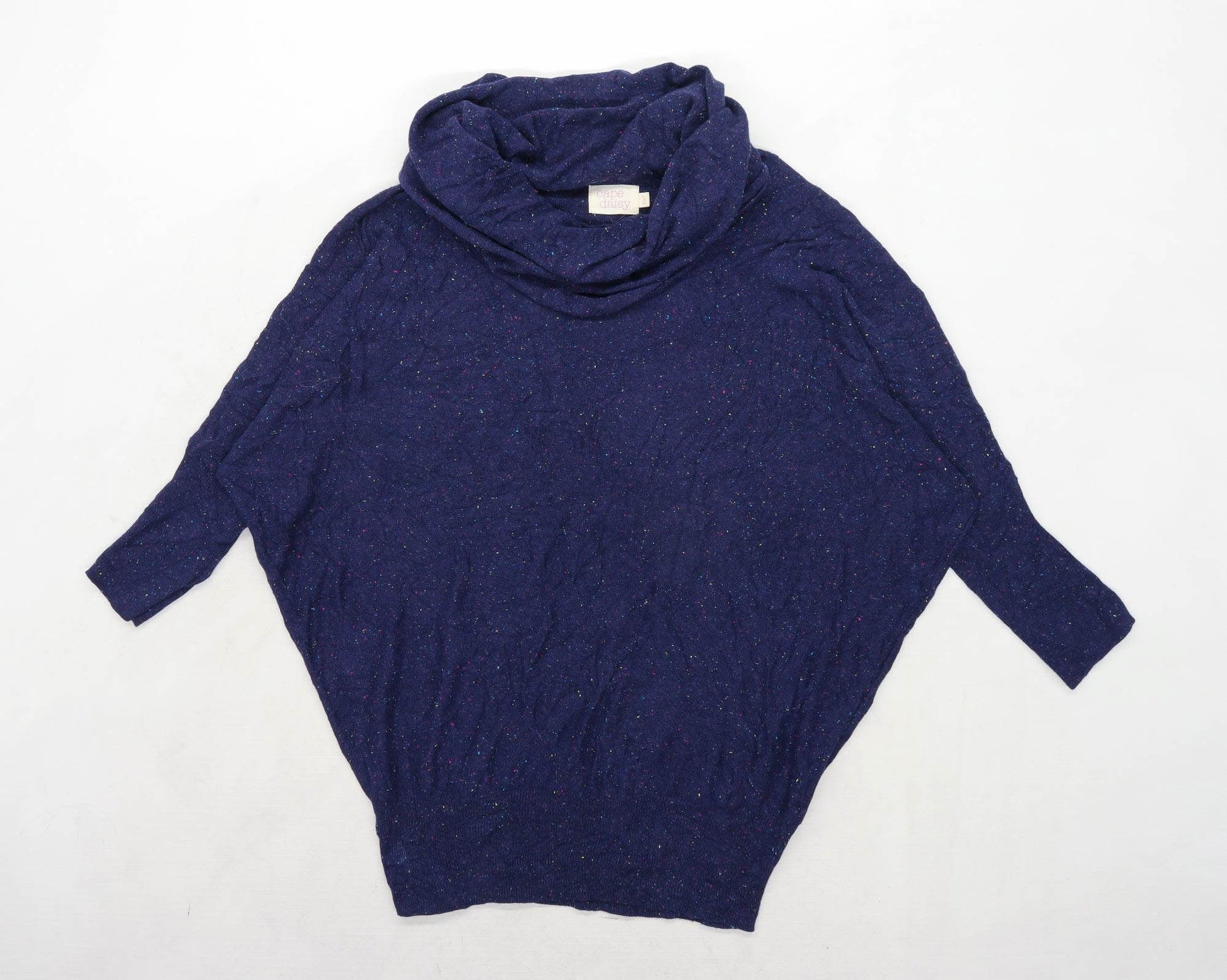 Womens Size 14 Cotton Blend Cowl Neck Blue Batwing Jumper (Regular)