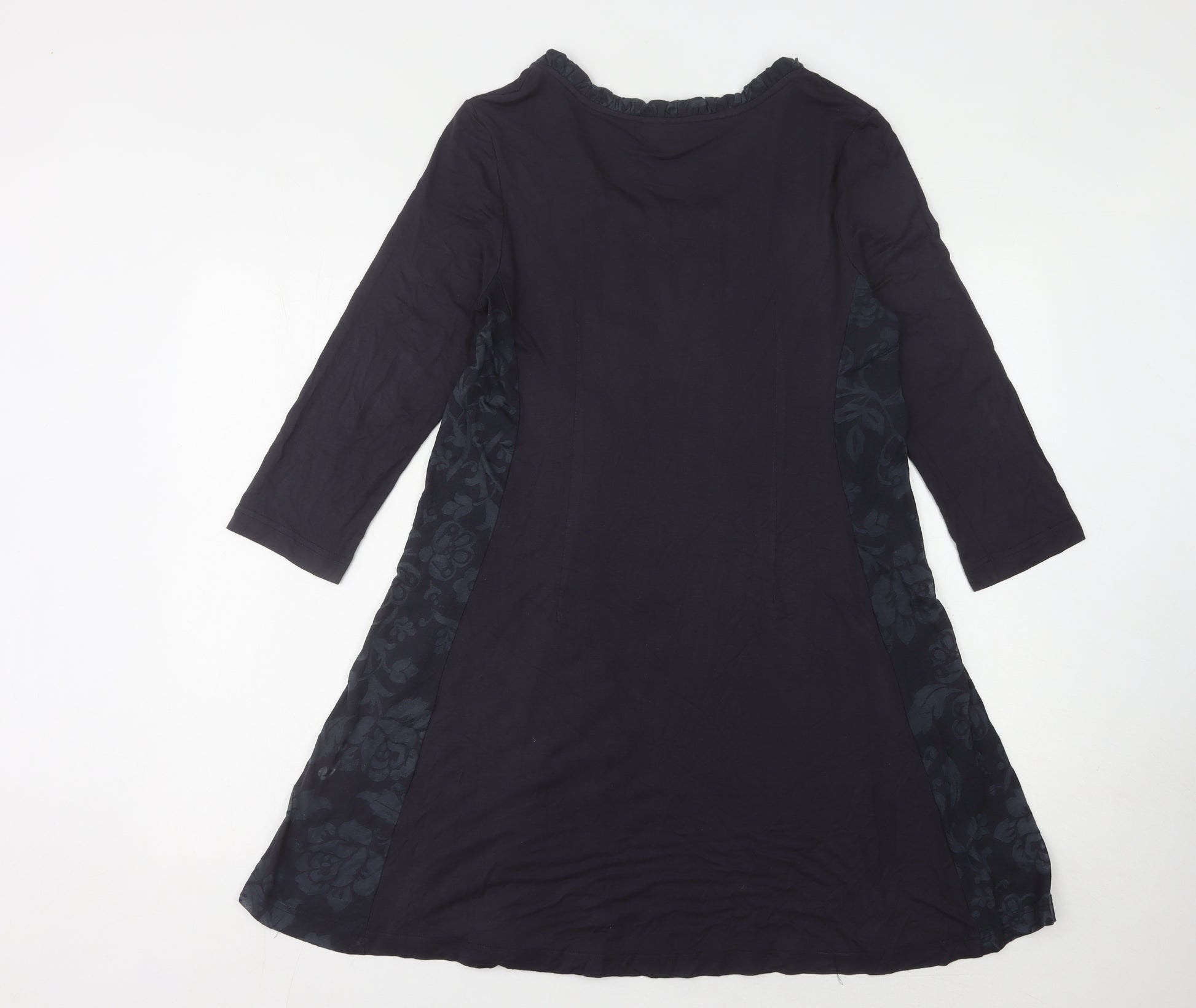 NEXT Womens Black Geometric Polyester A-Line Size 12 Round Neck Button