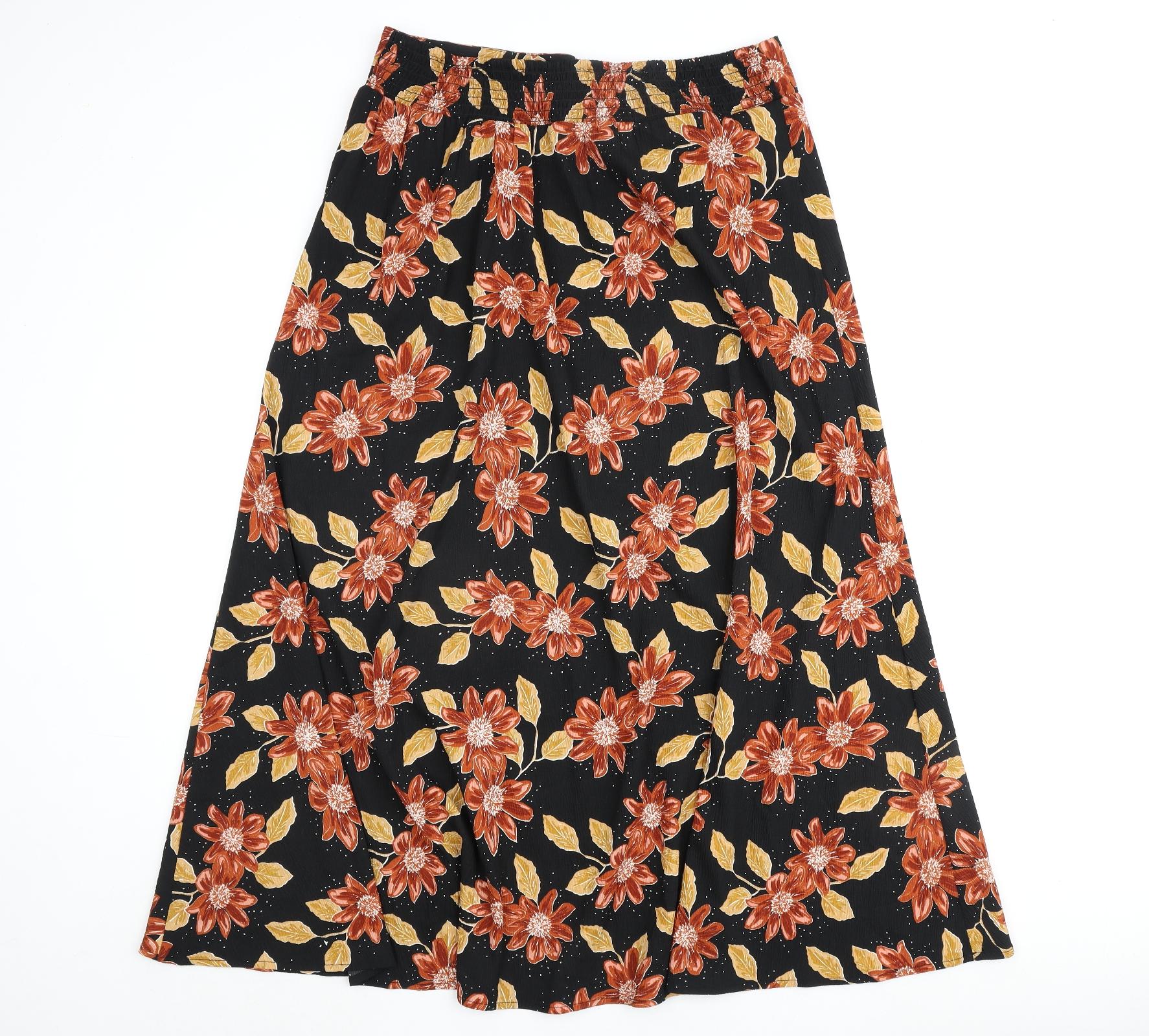 Womens Black Floral Polyester A-Line Skirt Size 32