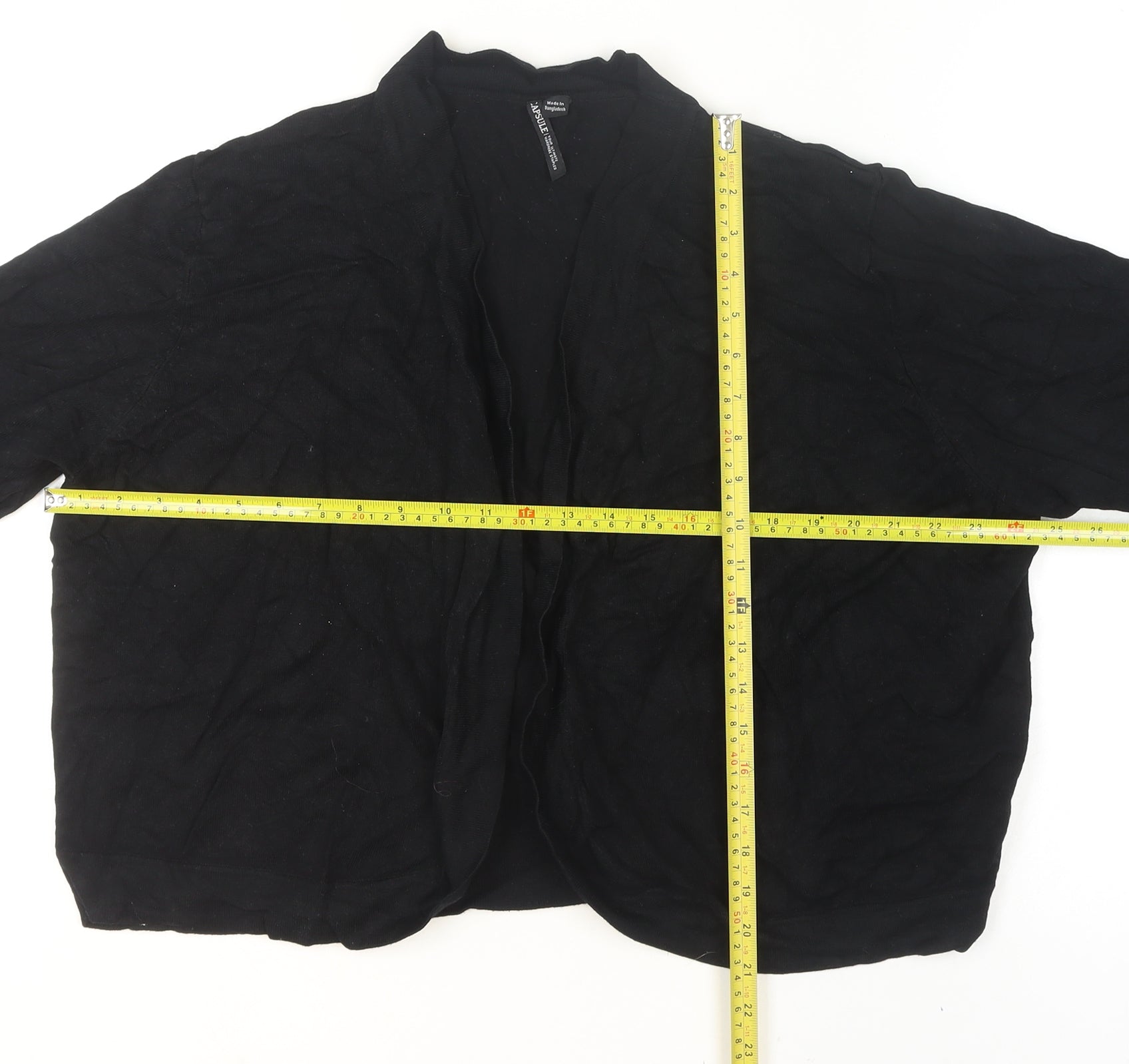 Elevate your everyday wardrobe with this stylish black open-front cardigan from Capsule. Designed for women who appreciate comfort and versatility, this medium-sized knit cardigan offers a relaxed fit with a flowing silhouette that drapes beautifully over any outfit. The 3/4 length dolman sleeves add a touch of effortless sophistication while allowing ease of movement, perfect for layering between seasons. Crafted from a soft blend of 70% viscose and 30% polyamide, the fabric feels smooth against the skin and provides lightweight warmth without bulk. The high viscose content ensures a gentle stretch, making it suitable for both casual outings and smart-casual settings alike. The open neckline and front design make it simple to throw on over blouses, dresses or t-shirts, while the minimalist aesthetic pairs seamlessly with jeans, trousers, or skirts. This cardigan’s tight-knit construction creates a sleek texture, and its simple, no-pattern style gives it a timeless appeal. Suitable for travel, workwear, or relaxed weekend wear, it easily transitions between seasons, especially spring, autumn, and mild summer days. This piece is in excellent pre-owned condition with no visible flaws, maintaining its lovely shape and finish. With Capsule’s reputation for creating wardrobe staples, this cardigan adds sophistication and functionality to any collection. Pair it with bold accessories for a chic look or keep it understated for an effortlessly polished style. Machine washable for easy care, it’s a go-to layering piece that combines comfort, style, and practicality, promising to be a much-worn favourite in any woman’s wardrobe.