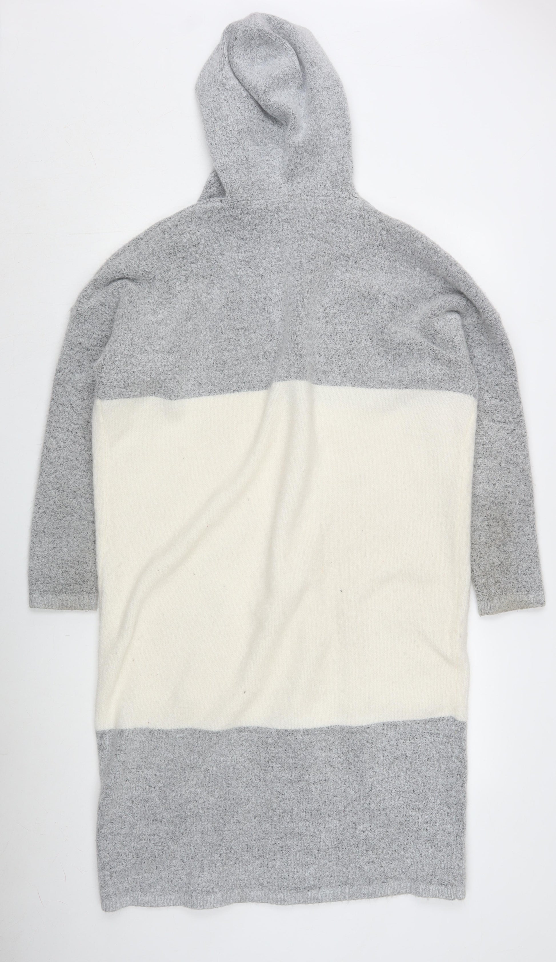 Women's Grey Ivory Hooded Open front Cardigan Size 16/18
