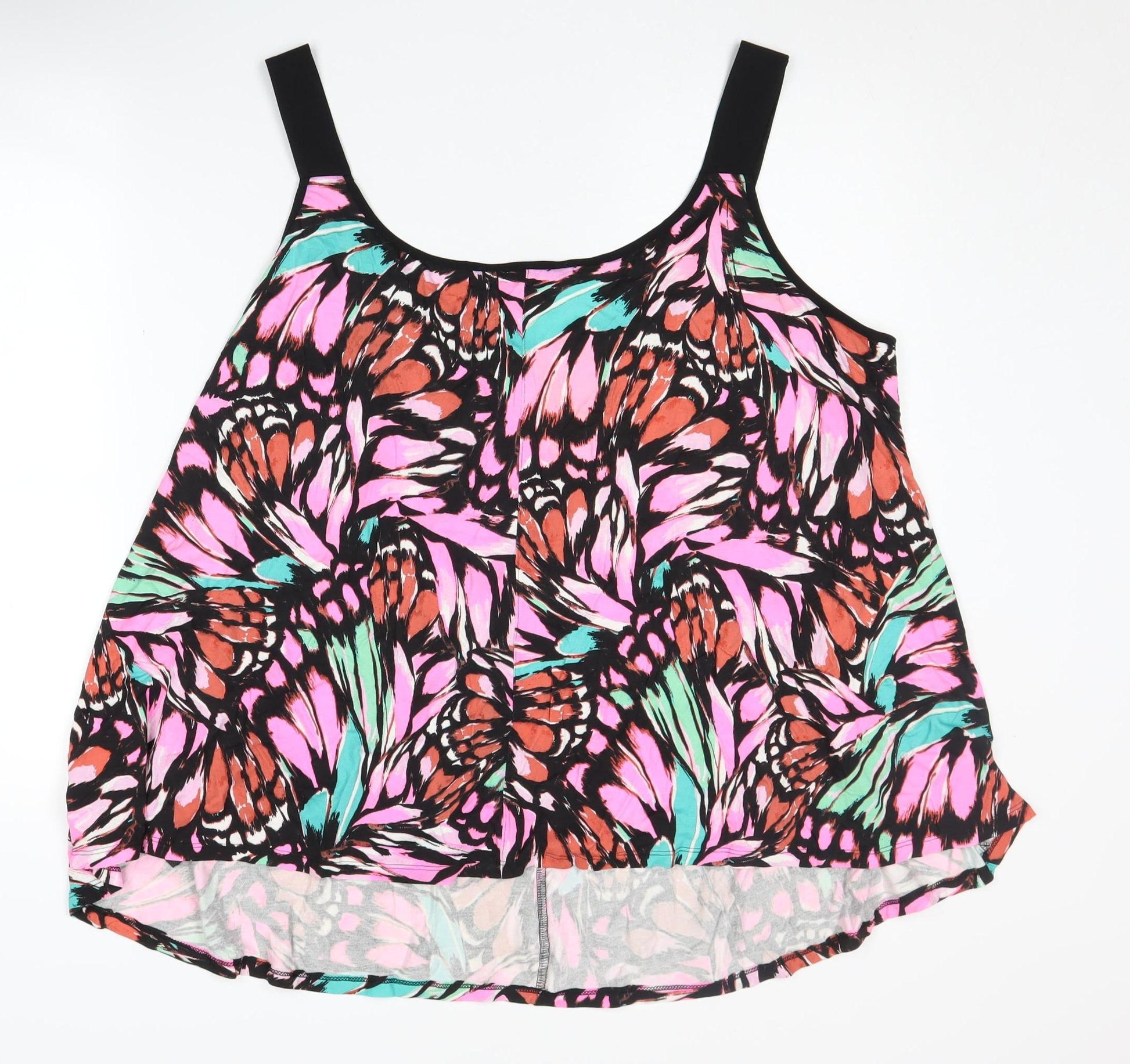Add a splash of colour to your wardrobe with this Capsule women's multicoloured tank top. Designed for plus-size figures, this vibrant tank features a delightful animal print pattern, perfect for making a stylish statement. The sleeveless, relaxed tunic style with a scoop neck and wide straps is crafted from a soft, stretchy jersey fabric blend of viscose and elastane, ensuring comfort and flexibility. Ideal for casual summer outings, this tank is a versatile piece that pairs wonderfully with jeans or shorts. Machine washable for easy care, it's a practical addition to any plus-size collection. The pullover design offers convenience, while its excellent condition means you're getting a quality piece at a great value.