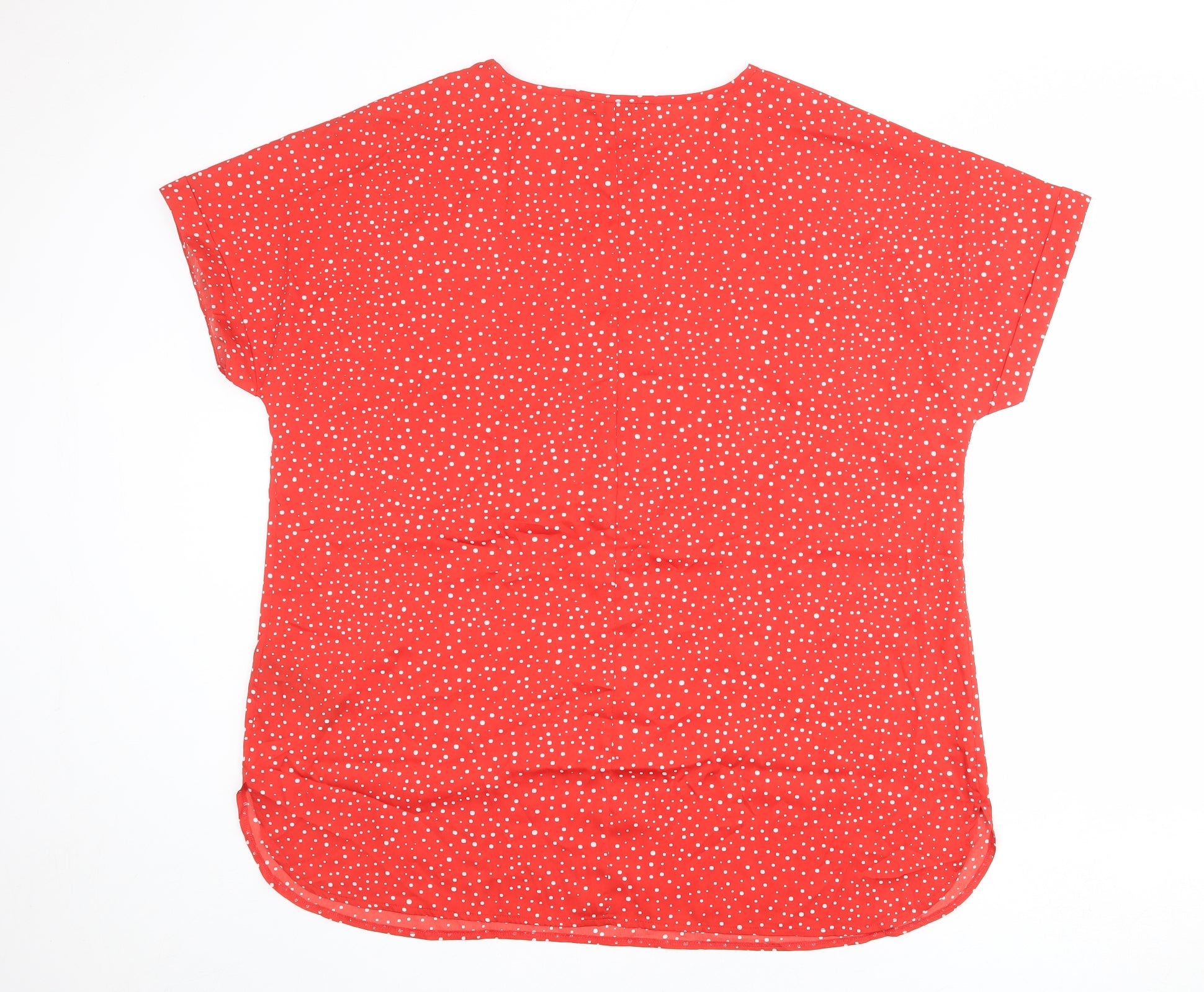 Womens Red Polka Dot Polyester Basic T-Shirt Size 20 Round Neck