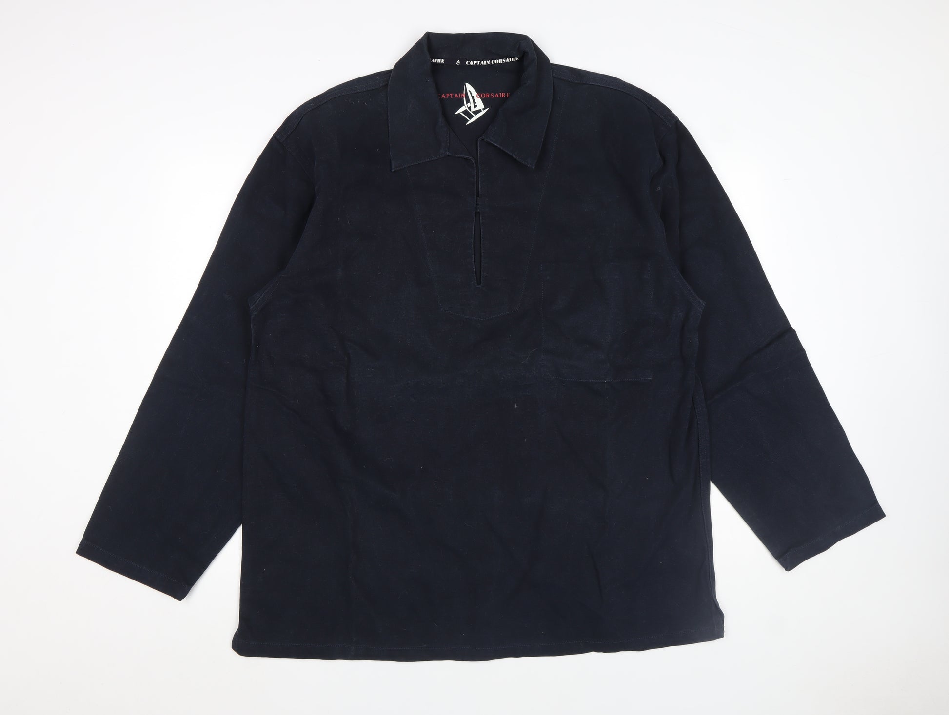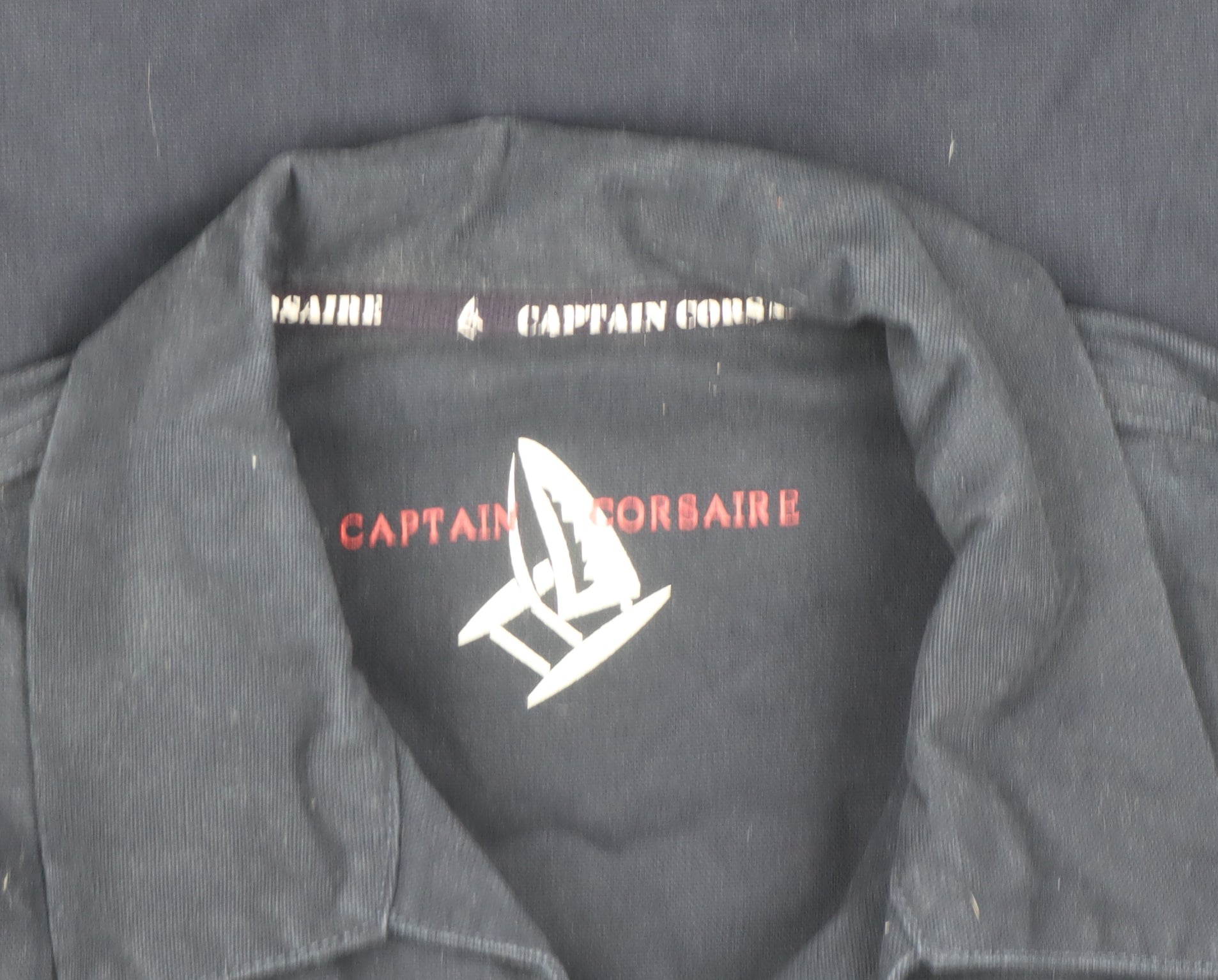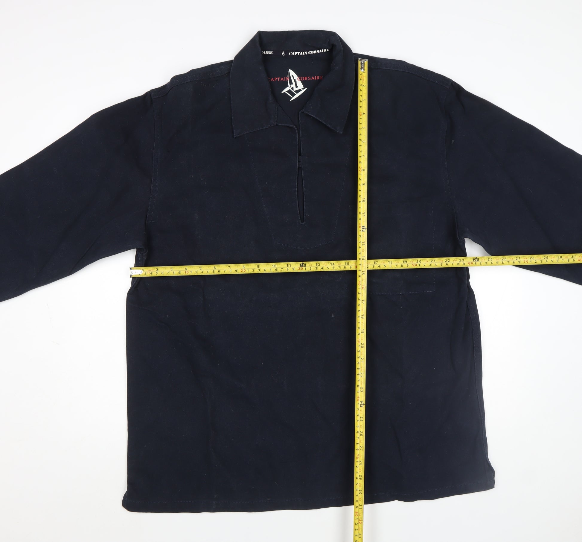 Step into timeless maritime style with this classic men’s sailing jacket from Captain Corsaire. Crafted from durable 100% cotton canvas, this piece captures the essence of coastal adventure while maintaining comfort and practicality for everyday wear. The deep blue colour gives it a versatile and refined appearance, perfect for seaside strolls, casual outings, or travel days. Designed with a point collar and pullover style, it combines a distinctive nautical silhouette with relaxed functionality. The jacket’s mid-length cut ensures mobility and protection from cool breezes, while the robust cotton construction delivers breathability and easy maintenance. Subtle detailing, including a front chest pocket and minimal seams, enhances its clean design. This Captain Corsaire jacket embraces the spirit of maritime heritage and is ideal for layering over lightweight tops or knitwear during spring and autumn seasons. The comfortable regular fit offers ease of movement and makes it a go-to staple for men seeking an effortlessly smart-casual look with a touch of rugged coastal charm. Whether worn on deck, along the pier, or in urban settings, it reflects both classic craftsmanship and enduring style. In very good condition with light signs of general wear, this pre-loved jacket remains in excellent wearable shape and continues to embody the brand’s tradition of durable, high-quality maritime apparel. A perfect addition for those who appreciate timeless nautical influences and well-made casual outerwear.