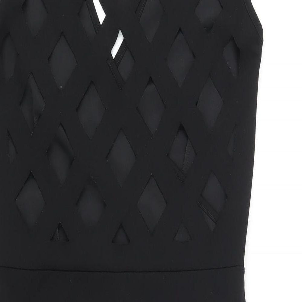 Womens Black Polyester Bodycon Size 10 V-Neck Pullover - Cut Out Back Detail