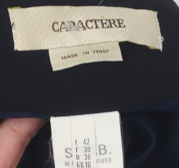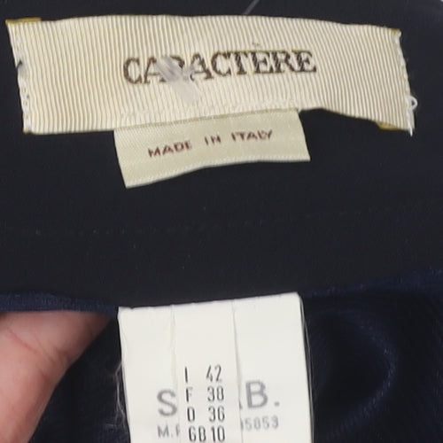 Elevate your wardrobe with this Caractere Women's Black Pencil Skirt, perfect for both business and casual settings. Crafted in Italy, this elegant skirt features a streamline silhouette that flatters every figure. The comfortable size 10 fits seamlessly with a regular size type. Boasting a blend of high-quality materials such as polyester, viscose, and elastane, the skirt ensures a snug fit with a hint of stretch for comfort. Its classic black colour makes it a timeless addition to any outfit, while the zipper closure guarantees ease of wear. Ideal for all seasons, this versatile piece can be dressed up or down to suit your occasion, be it for work or casual outings. With a beautifully understated design, this skirt is undoubtedly a staple for your fashion collection.