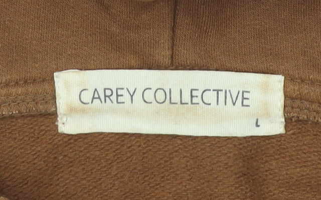 This stylish Carey Collective hoodie is a must-have piece for any wardrobe. Crafted from a comfortable blend of 60% cotton and 40% polyester, it offers both softness and durability, making it ideal for everyday wear. The rich brown colour adds a touch of elegance and complements a wide range of outfits. Designed for women, this hoodie features a relaxed fit in size Large, providing ample room for layering. Its pullover style is enhanced by a classic hood, keeping you cosy during cooler days. The kangaroo pocket at the front not only adds to its casual charm but also offers convenient storage for your essentials. Perfect for casual outings or day-to-day errands, this hoodie is a versatile addition to your wardrobe. Pair it with jeans or leggings for an effortlessly chic look. Despite being in excellent condition, this hoodie comes without original tags. Get ready to embrace the combination of style and comfort with this Carey Collective piece.