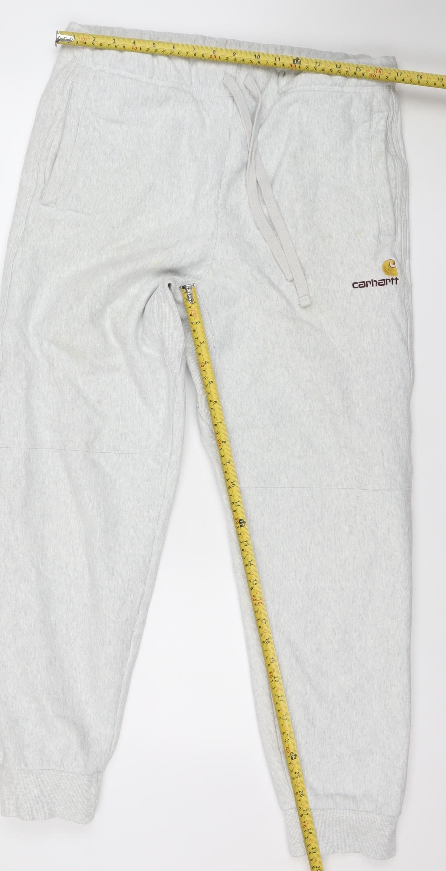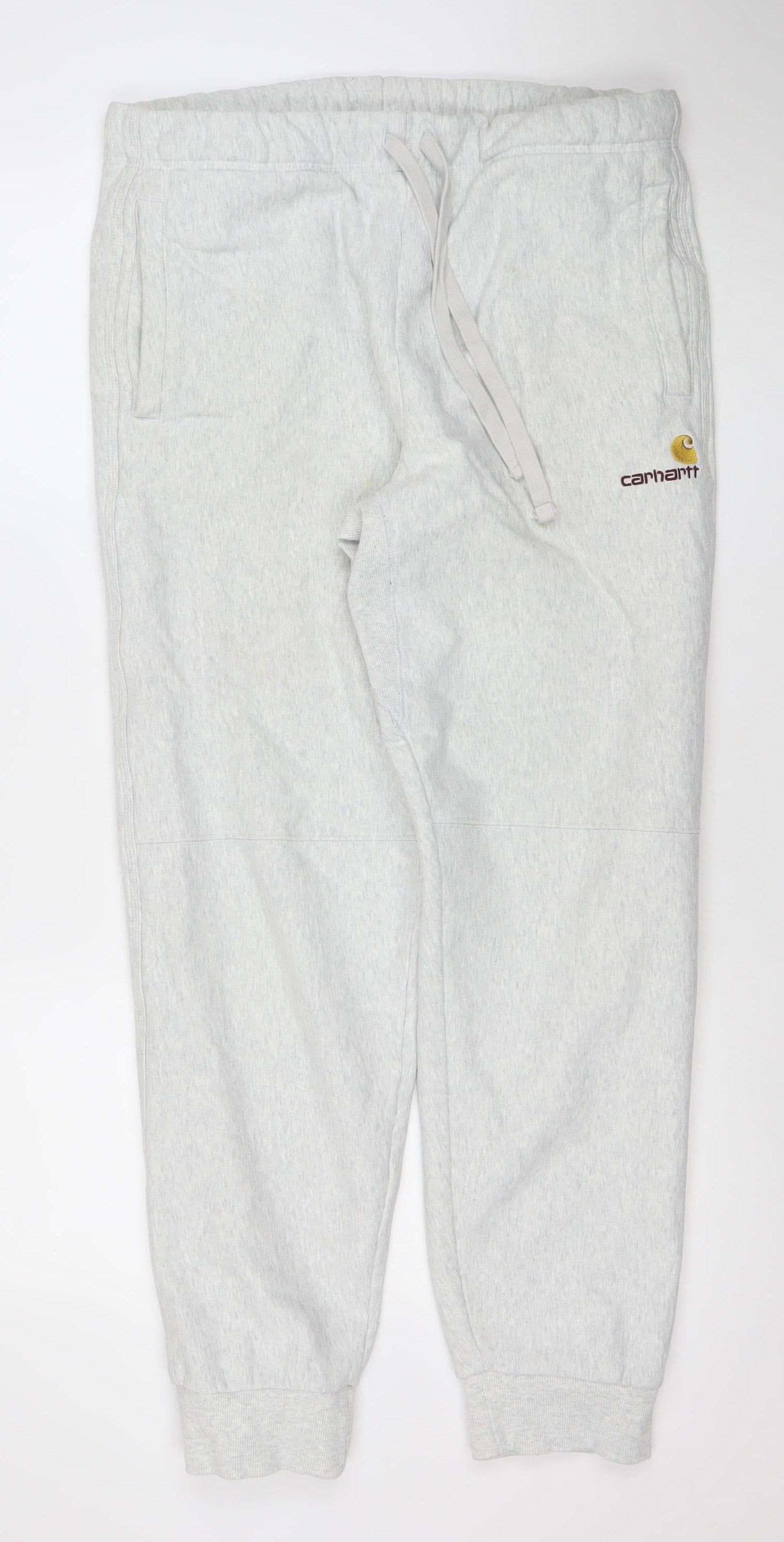 Step into everyday comfort with these Carhartt Work In Progress men's jogger sweatpants in grey, designed for both style and practicality. Crafted from a premium cotton and polyester blend, the soft French terry fabric offers breathability and lasting comfort whether you’re training, lounging, or running errands. The jogger style combines a relaxed fit with a tapered leg for a clean, modern silhouette that's easy to pair with your favourite trainers or hoodies. Featuring an adjustable drawstring waistband and elastic cuffs, these Carhartt joggers ensure a secure yet flexible fit suitable for activewear or casual wear alike. Functional pockets add usability, perfect for keeping essentials close at hand, whether you’re hitting the gym or enjoying a laid-back weekend. The simple grey hue delivers timeless versatility, making these trousers a staple piece in any wardrobe. With the unmistakable Carhartt logo stitched near the pocket, these joggers carry the brand’s signature quality and rugged appeal in a comfortable everyday shape. Machine washable for easy care and durability, they provide lasting wear while maintaining softness wash after wash. Ideal for all seasons, these Carhartt sweatpants offer a perfect blend of practicality and effortless style, ready to move with you through work, leisure, and everything in between. Perfect for men seeking reliable, high-quality activewear trousers that balance performance and comfort seamlessly.