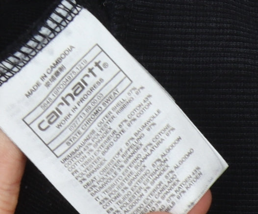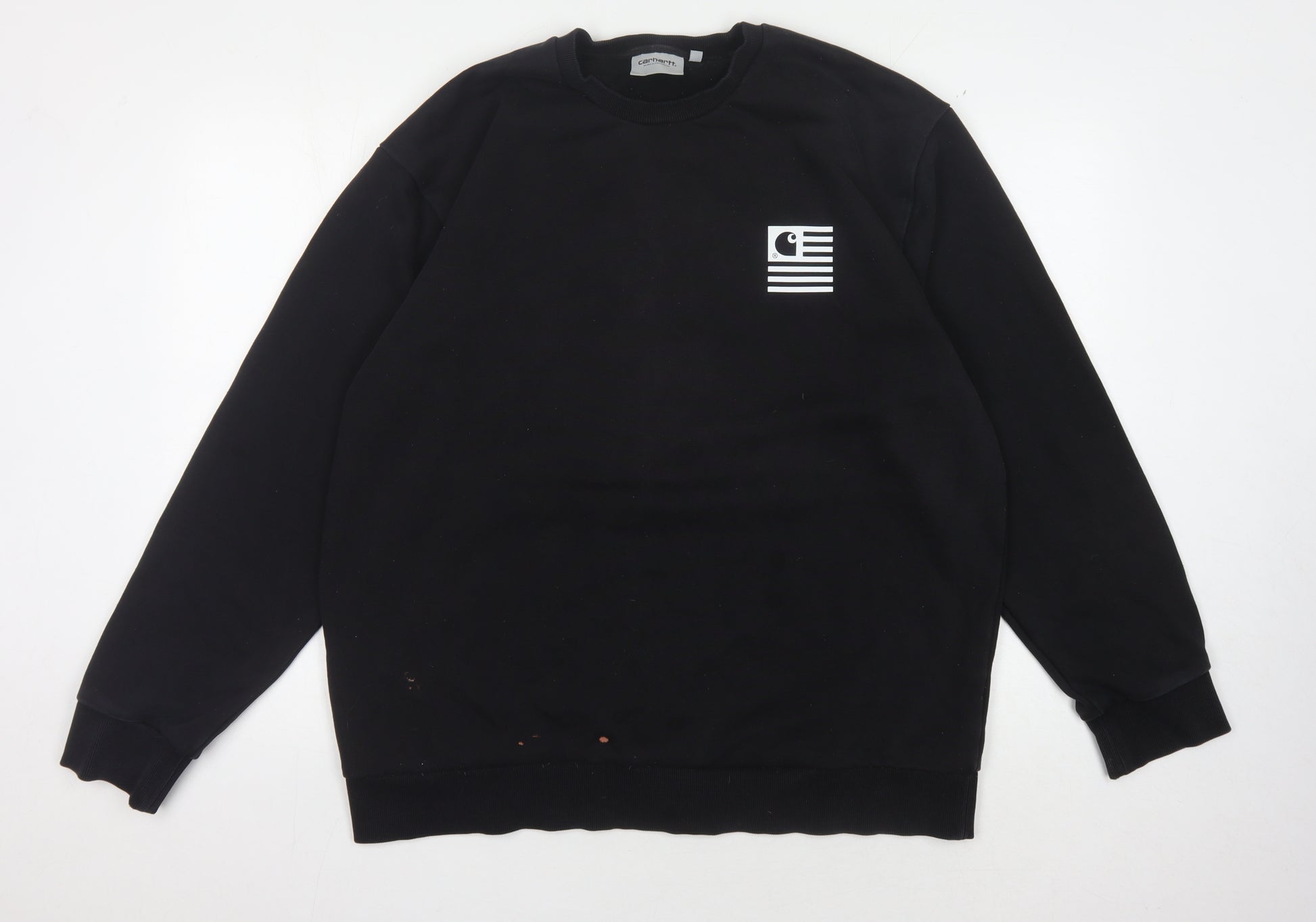 Elevate your casual wardrobe with this classic Carhartt men's pullover sweatshirt in sleek black. Crafted in a comfortable mix of cotton and polyester, this XL sweatshirt offers a relaxed fit that is perfect for layering in both autumn and winter. The timeless crew neck design and long sleeves make it ideal for any casual occasion, while the distinct Carhartt logo accentuates the front and back, adding a touch of style to your ensemble. Graphic prints enhance the overall appeal, making this piece as fashionable as it is practical. The sweatshirt's jersey fabric type ensures comfort and durability, and being machine washable adds to the convenience. Even with minor stains on the front, this sweatshirt is in good condition, offering a rugged aesthetic that aligns with the iconic Carhartt brand. Whether you're lounging at home or out and about, this versatile sweatshirt keeps you warm and stylish. Don't miss the chance to own a piece that blends functionality with fashion effortlessly.