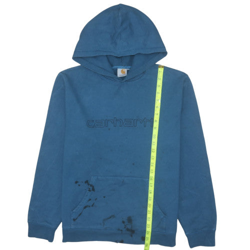 This Carhartt men's hoodie combines the brand’s signature workwear durability with casual everyday comfort. Crafted from 100% cotton fleece, this pullover hoodie offers a soft, heavyweight feel that makes it ideal for cooler seasons such as autumn, winter, and early spring. The blue colourway gives it a versatile look that pairs easily with jeans or joggers, while the front embroidered Carhartt logo adds a stylish and recognisable touch. Designed in a regular fit with a classic crew neckline, this hoodie provides a comfortable and relaxed wear suitable for daily use or layering. Featuring long sleeves, a spacious front kangaroo pocket, and an attached hood, this item merges practicality with timeless urban design. The breathable cotton fabric ensures comfort and moisture control, while the brushed interior delivers added softness and warmth. Despite some visible staining on the front and sleeve areas, the garment remains in good, wearable condition with plenty of life left. Machine washable for easy care, this hoodie is ideal for those seeking a durable everyday piece with authentic Carhartt appeal. Perfect for casual workdays, lounging, or outdoor adventures, it embodies rugged simplicity and effortless style. A great addition to any wardrobe for those who appreciate understated streetwear with reliable construction. With the Carhartt logo embroidery front and centre, this hoodie reflects consistent quality and utility-driven fashion trusted worldwide. Ideal for those who favour practical garments with heritage appeal, this piece offers functionality without sacrificing comfort or design integrity.