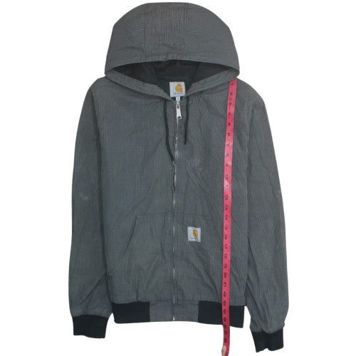 This Carhartt Men’s Grey Active Jacket combines the brand’s signature durability with a comfortable everyday design. Made from 100% cotton canvas, it delivers both rugged reliability and softness, perfect for those who need a dependable layer for work or casual wear. The jacket features a full-zip front closure, a drawstring-adjustable hood, and two practical front pockets ideal for keeping hands warm or storing essentials. Its mid-length cut provides great coverage without restricting movement, making it suitable for outdoor tasks, commuting, or laid-back weekends. The grey check pattern adds an understated touch of style, while the Carhartt logo accents on the front and inside label affirm the jacket’s authenticity. The 100% cotton lining ensures breathability and comfort for transitional weather, ideal for autumn and winter use. Designed for a regular fit, this medium-sized jacket allows for easy layering over shirts or jumpers. The ribbed cuffs and hem help retain warmth and provide a secure fit. Machine washable for ease of care, this piece epitomises functional workwear that aligns with modern streetwear trends. The overall condition is very good, showing only a small mark near the hem, with minimal signs of wear. Perfect for anyone seeking a practical and stylish outerwear piece from a trusted brand, this Carhartt jacket is built to last and versatile enough to pair with jeans, boots, or casual trainers. Whether worn on chilly work mornings or relaxed weekends, it offers dependable comfort and classic style Carhartt is known for. This is a fantastic opportunity to own a premium quality jacket that balances craftsmanship, function, and everyday appeal.