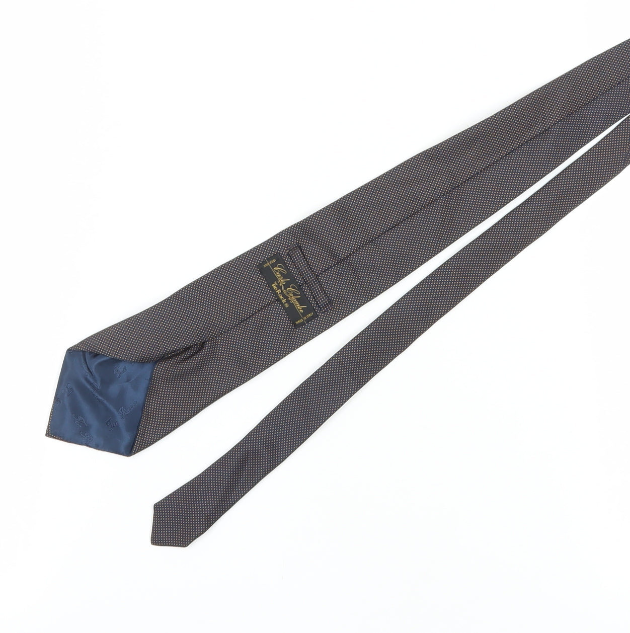 Add a touch of classic elegance to your wardrobe with this Carlo Colombo Men's Black Polka Dot Silk Tie. Crafted from 100% silk, this tie exudes luxury and sophistication, making it perfect for both formal occasions and everyday business wear. The subtle polka dot pattern provides a timeless appeal, complementing any outfit with a hint of understated charm. Its pointed style ensures a sleek and polished look, ideal for those who appreciate meticulous detail in their attire. Designed for men who value both style and substance, this tie promises to be a versatile addition to your collection. Despite being pre-loved, it is in excellent condition with no visible signs of wear, ensuring it retains its pristine appearance. Whether you're attending a wedding, a business meeting, or a casual outing, this tie will elevate your style effortlessly. Embrace the finesse of Carlo Colombo with this premium tie, a must-have accessory for the modern gentleman.