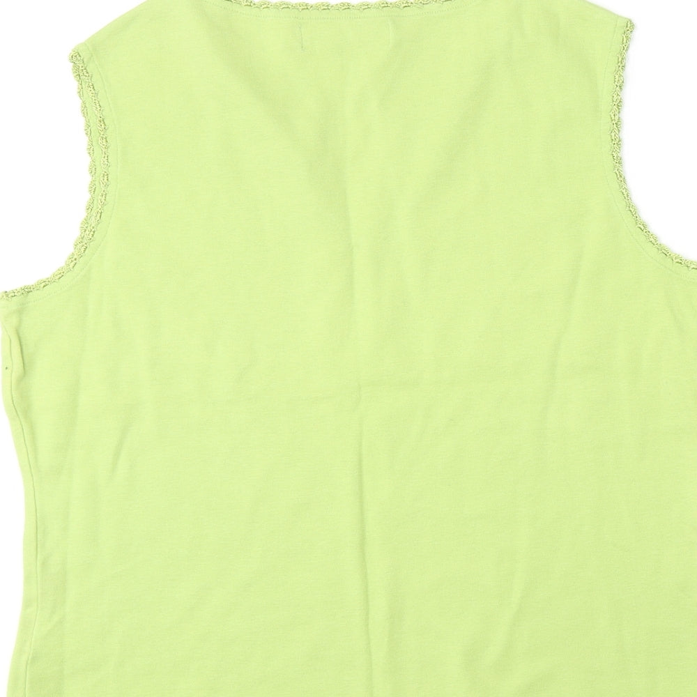 Womens Green Cotton Basic Tank Size S V-Neck - Size S-M