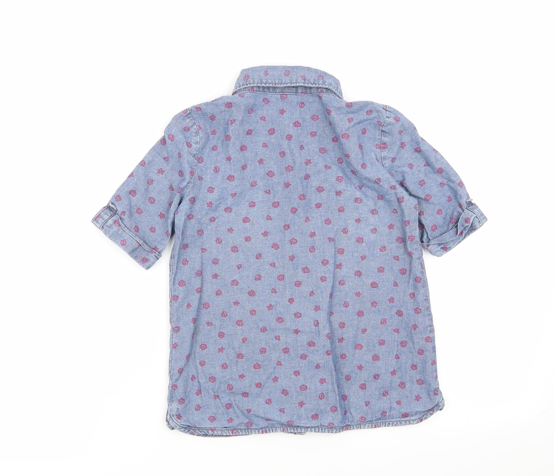 Girls Blue Geometric Basic Button-Up Size 5 Years