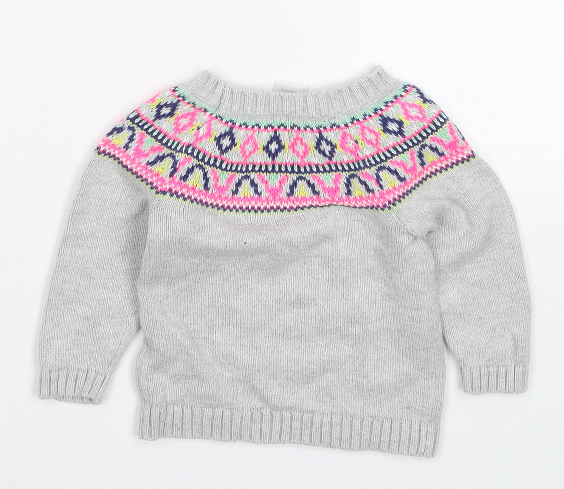 Girls Grey Fair Isle Knit Pullover Jumper Size 6-9 Months