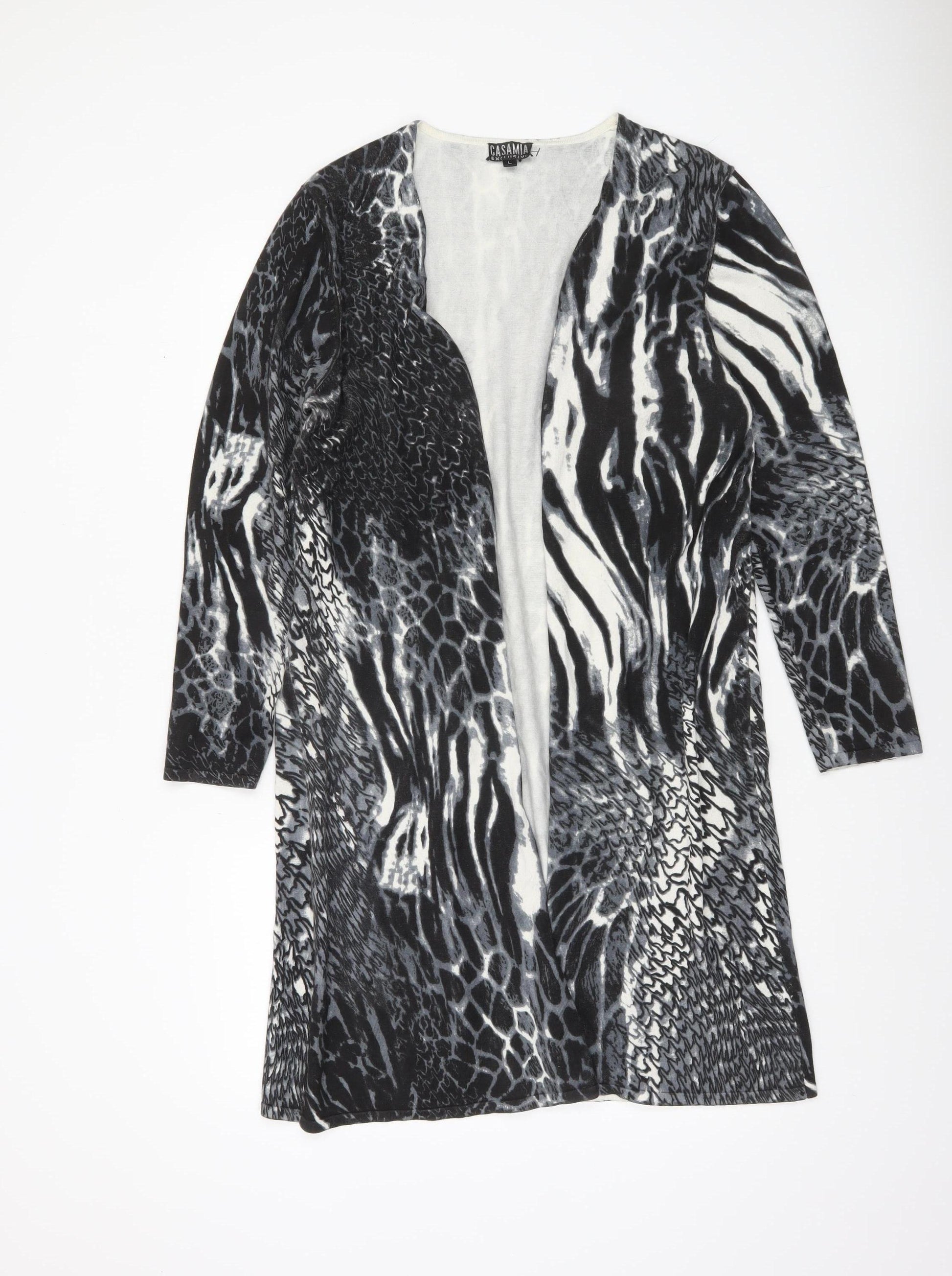 Womens Black Animal Print Long Sleeve Cardigan L
