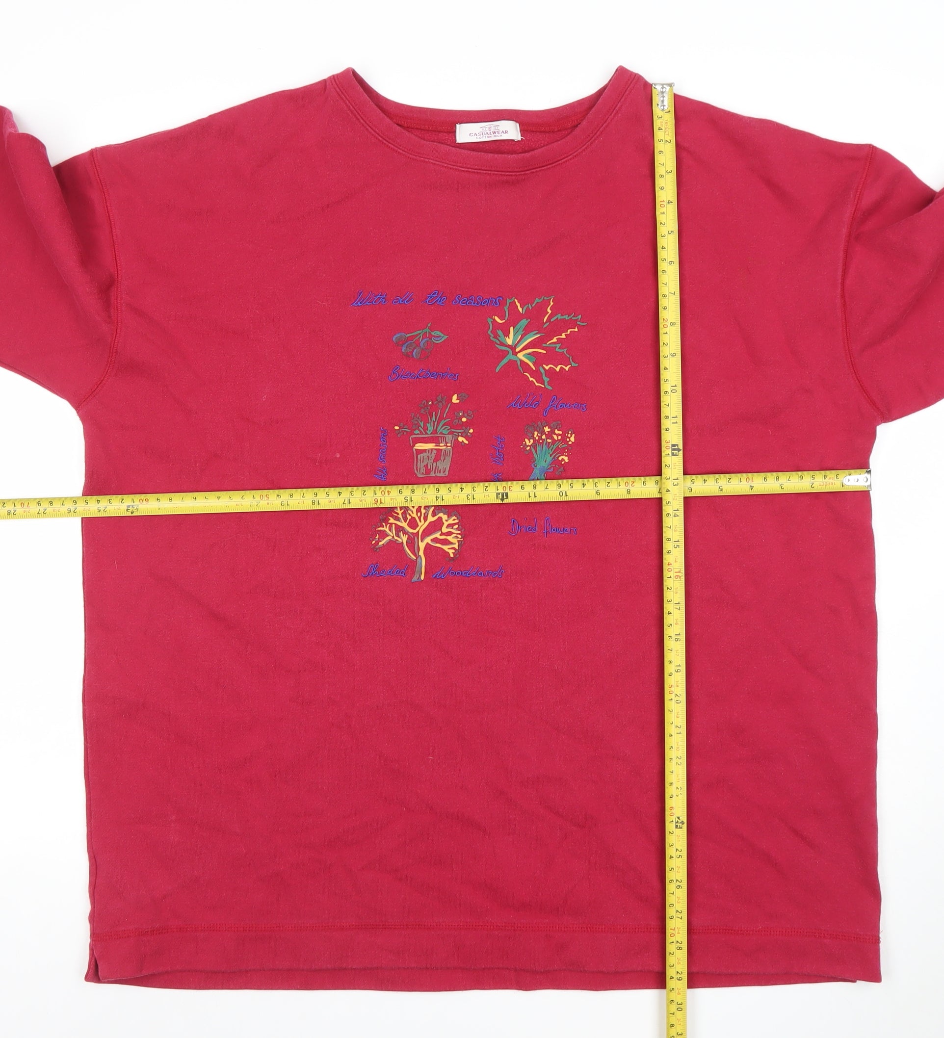 Women Red Embroidered Cotton Pullover Sweatshirt Size 20