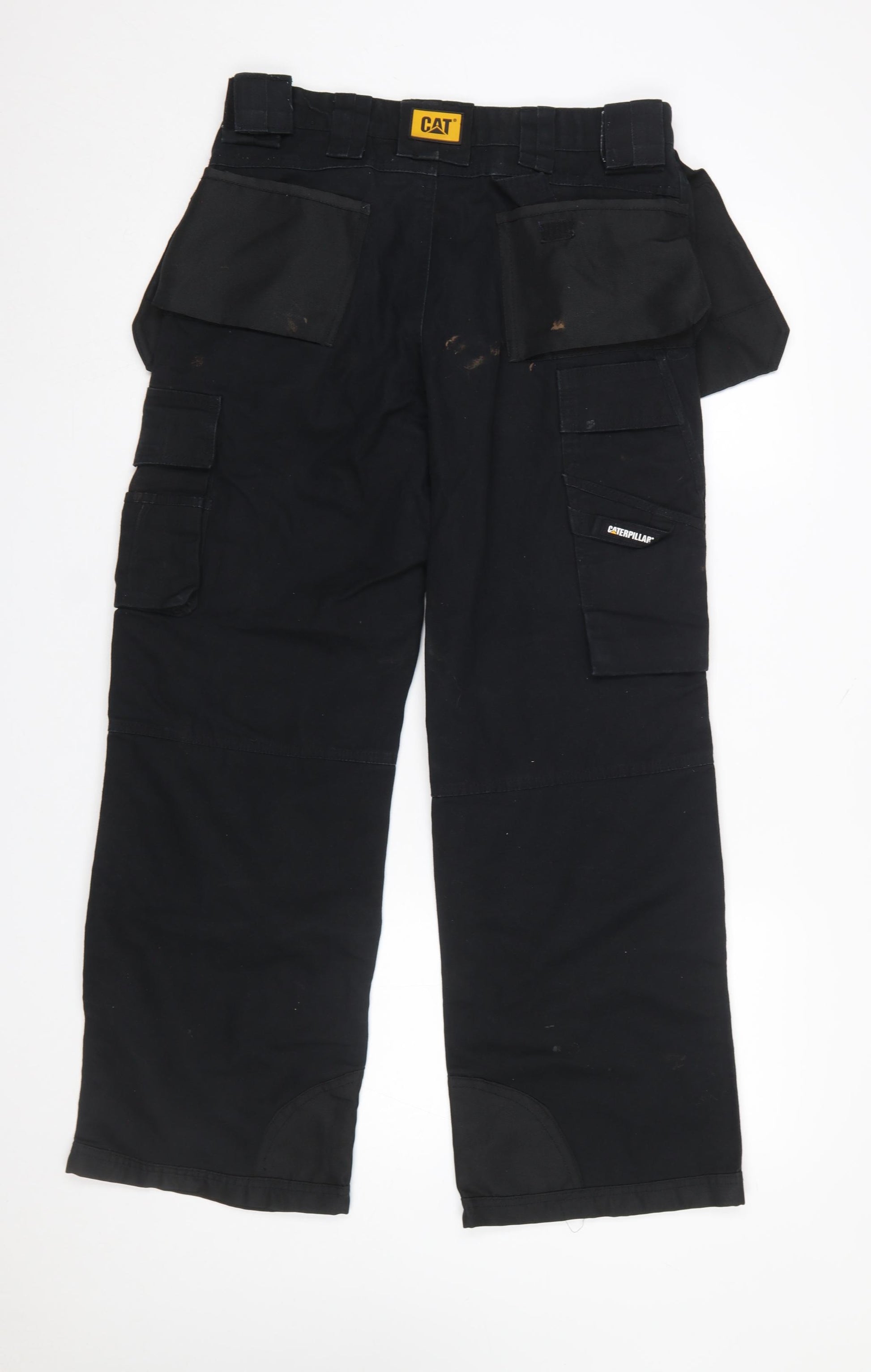 Get ready for durability and performance with these CAT men’s black cargo work trousers, engineered for reliability and comfort on the job. Designed in a classic, regular fit and featuring a tough cotton-polyester canvas blend, these trousers offer both strength and flexibility to keep up with demanding work environments. The black design with the iconic CAT branding exudes a professional and rugged appeal, while multiple spacious cargo and utility pockets provide practical storage solutions for tools and essentials. Reinforced knee and pocket areas enhance durability, ensuring the trousers withstand heavy wear and tear over time. The mid-rise waist and straight leg style deliver a comfortable, modern look suitable for all-day wear whether on-site or during casual, heavy-duty tasks. They feature a secure zip and button closure, along with belt loops for added fit support. Built with practicality in mind, these cargo trousers are ideal for autumn and winter seasons, providing reliable protection and comfort without sacrificing mobility. Although pre-owned with visible marks that indicate previous use, they remain sturdy and fully functional — the perfect affordable choice for tradesmen or outdoor enthusiasts seeking quality workwear. Machine washable and easy to maintain, these CAT trousers are made to handle the demands of everyday activities while offering enduring style and functionality. A confident choice for anyone looking for proper workwear that can be counted on day after day — reliable, practical and built for work.
