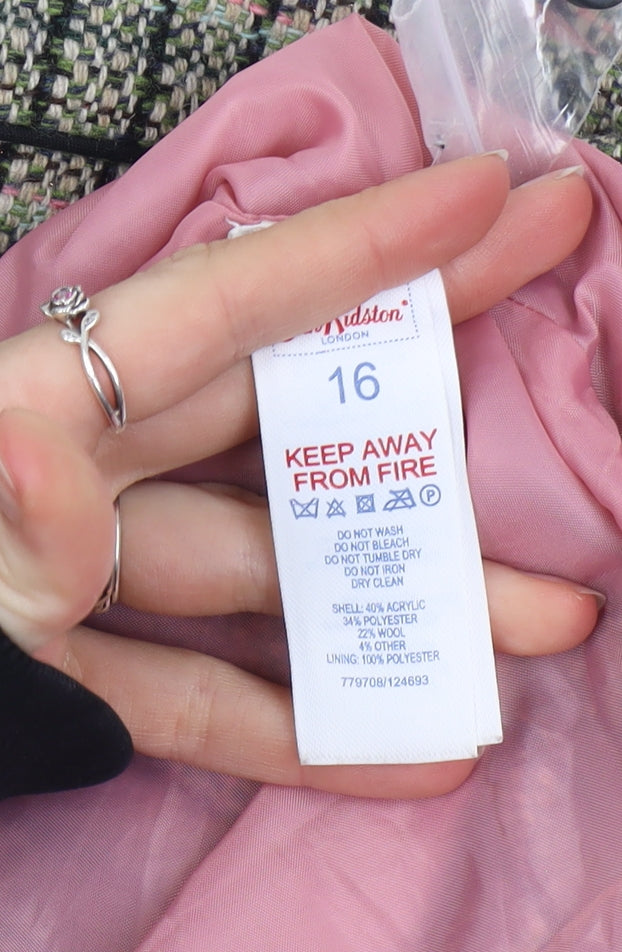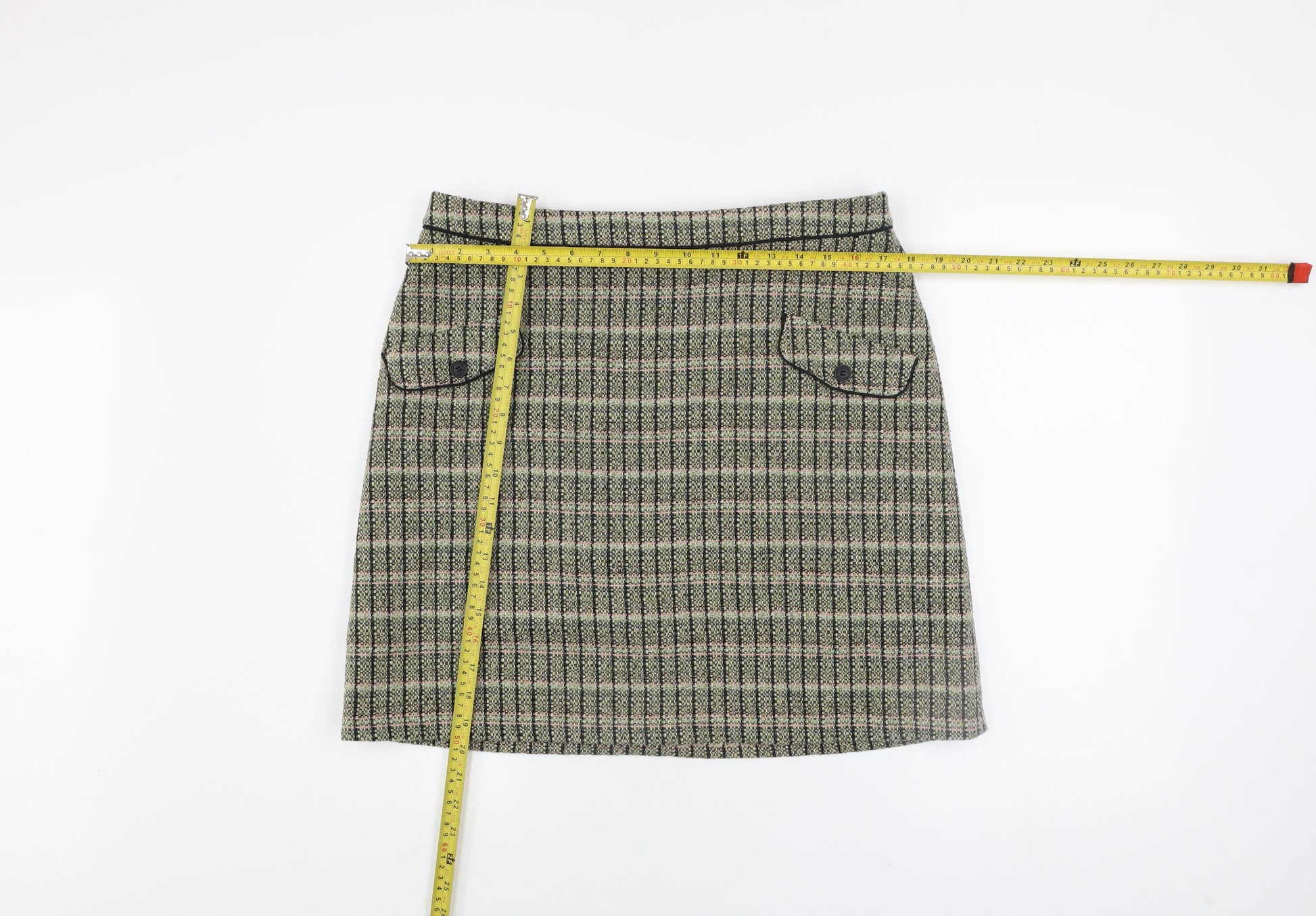 Step into timeless elegance with this beautiful Cath Kidston A-line skirt, crafted to bring classic British charm to your wardrobe. Expertly tailored from a soft, heavyweight tweed blend of acrylic, polyester, and wool, the skirt promises both durability and warmth — perfect for the cooler months of autumn and winter. Its distinctive check pattern in green tones, enhanced by black piping, offers a stylish and sophisticated edge that makes it an ideal choice for both smart-casual and workwear occasions.This knee-length skirt features a structured A-line silhouette that flatters the figure while maintaining comfort and ease of movement. It is fully lined in soft pink polyester for a smooth, luxurious feel against the skin. Two button-accented flap pockets at the front add charming detail and practicality, while a concealed zip closure at the back ensures a seamless and polished look. The high-rise waist helps create a defined, feminine shape, allowing it to pair beautifully with tucked-in blouses or lightweight knitwear.Whether styled with a crisp white shirt for office sophistication or a cosy jumper and tights for a casual weekend ensemble, this Cath Kidston skirt captures the effortless versatility and timeless appeal associated with the brand. A must-have piece for anyone looking to elevate their seasonal wardrobe, it embodies understated grace with a subtle vintage-inspired twist.In excellent pre-loved condition with minimal signs of previous wear, this skirt has been carefully maintained, making it a quality investment that’s ready to wear. Perfect for women who appreciate refined detail and quality craftsmanship, this piece will quickly become a trusted favourite in your wardrobe rotation. Ideal for workplace dressing, formal events, or smart daytime outings, this Cath Kidston A-line check skirt delivers timeless appeal, comfort, and elegance in one effortlessly chic design.
