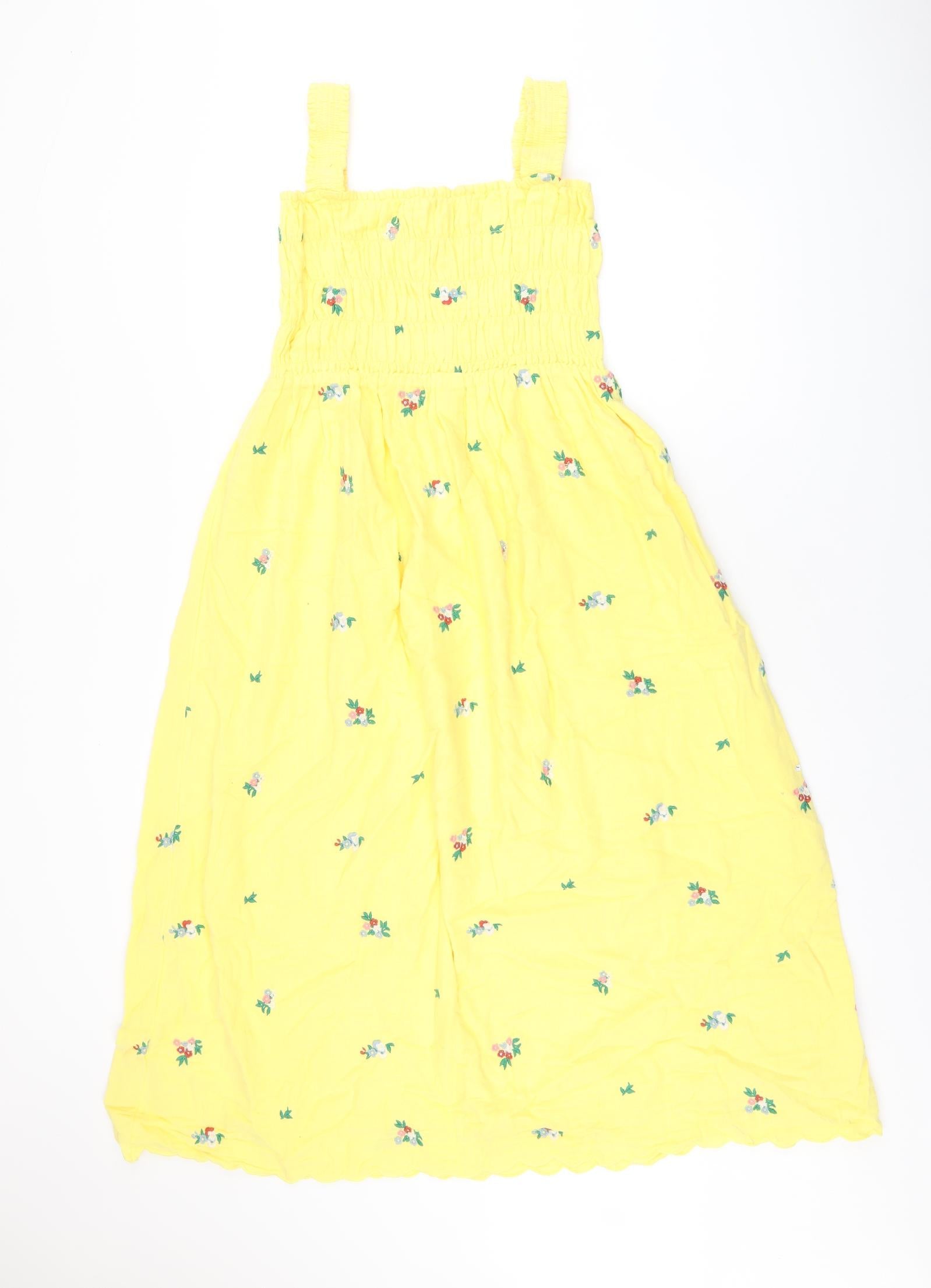 Womens Yellow Floral Polyester A-Line Size 8 Square Neck Pullover