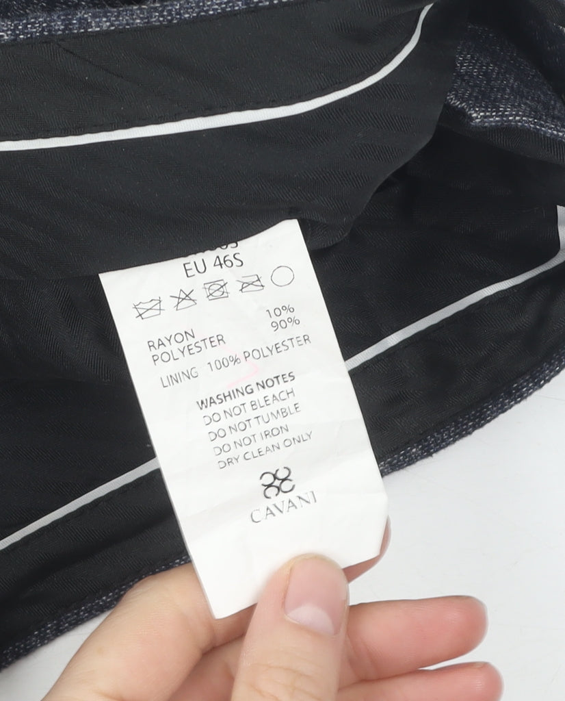 Discover elegance and style with these Cavani men's grey formal trousers. Ideal for a sophisticated look, these trousers are crafted from a blend of rayon and polyester, providing both comfort and durability. The classic straight leg design offers timeless appeal, making them perfect for formal occasions, workwear, or any smart-casual setting during autumn and winter. The trousers feature a flat front and secure with a convenient button and zip closure. Easy to maintain, they are dry clean only to preserve the fabric's quality. Despite their previously owned status, they are in excellent condition with no visible signs of wear, ensuring you look sharp and polished. With their versatile grey colour, these trousers will easily complement any wardrobe, offering endless styling possibilities. A must-have addition for the fashion-conscious man seeking a durable yet stylish option for formal wear.