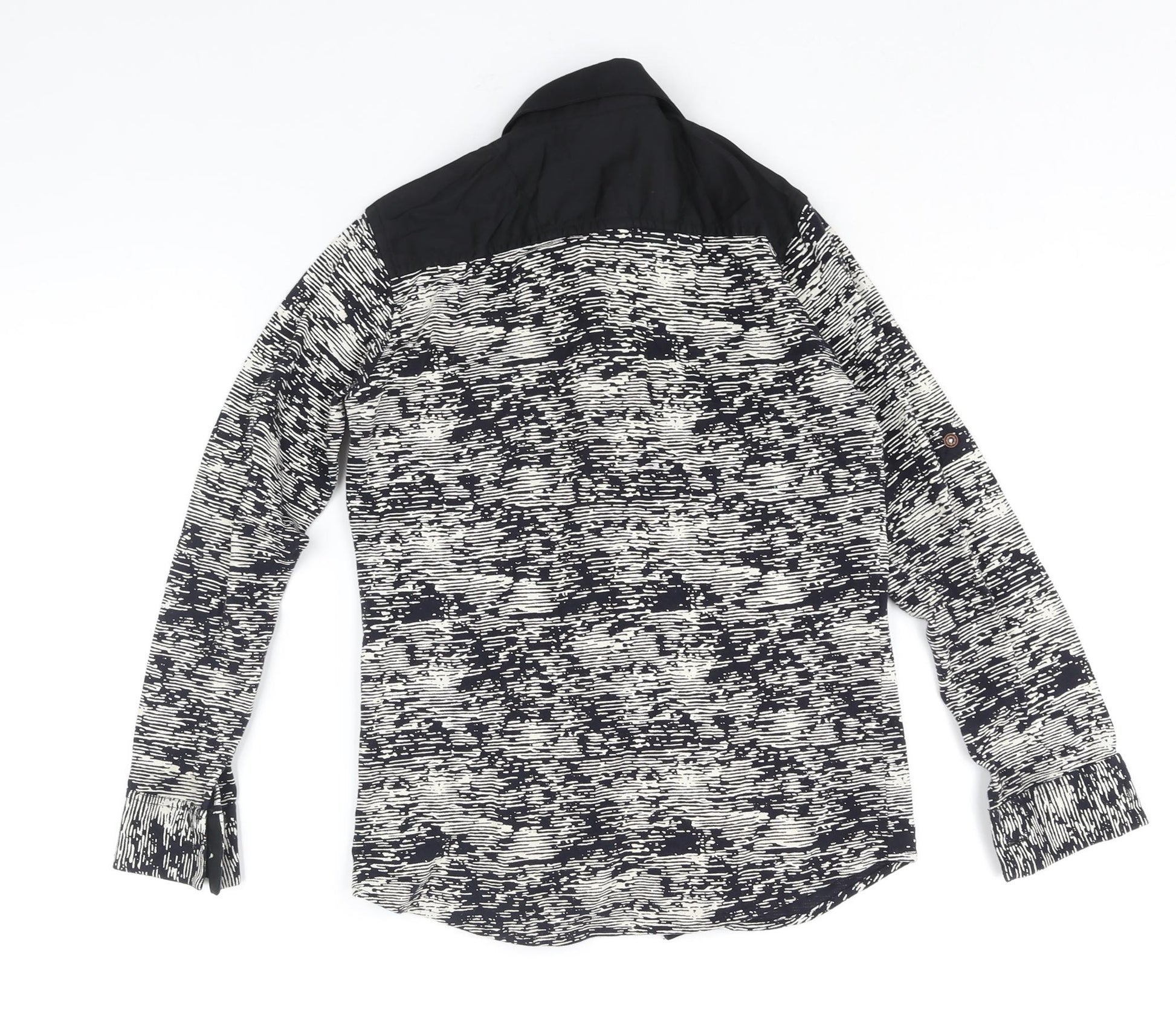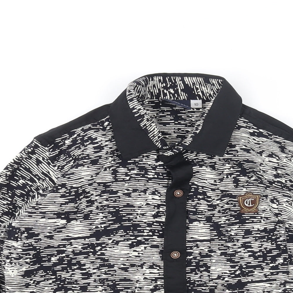 Womens Blue Geometric Polyester Basic Button-Up Size 10 Collared