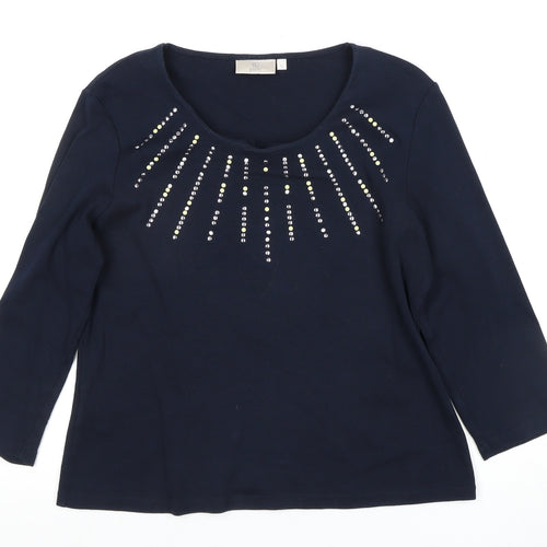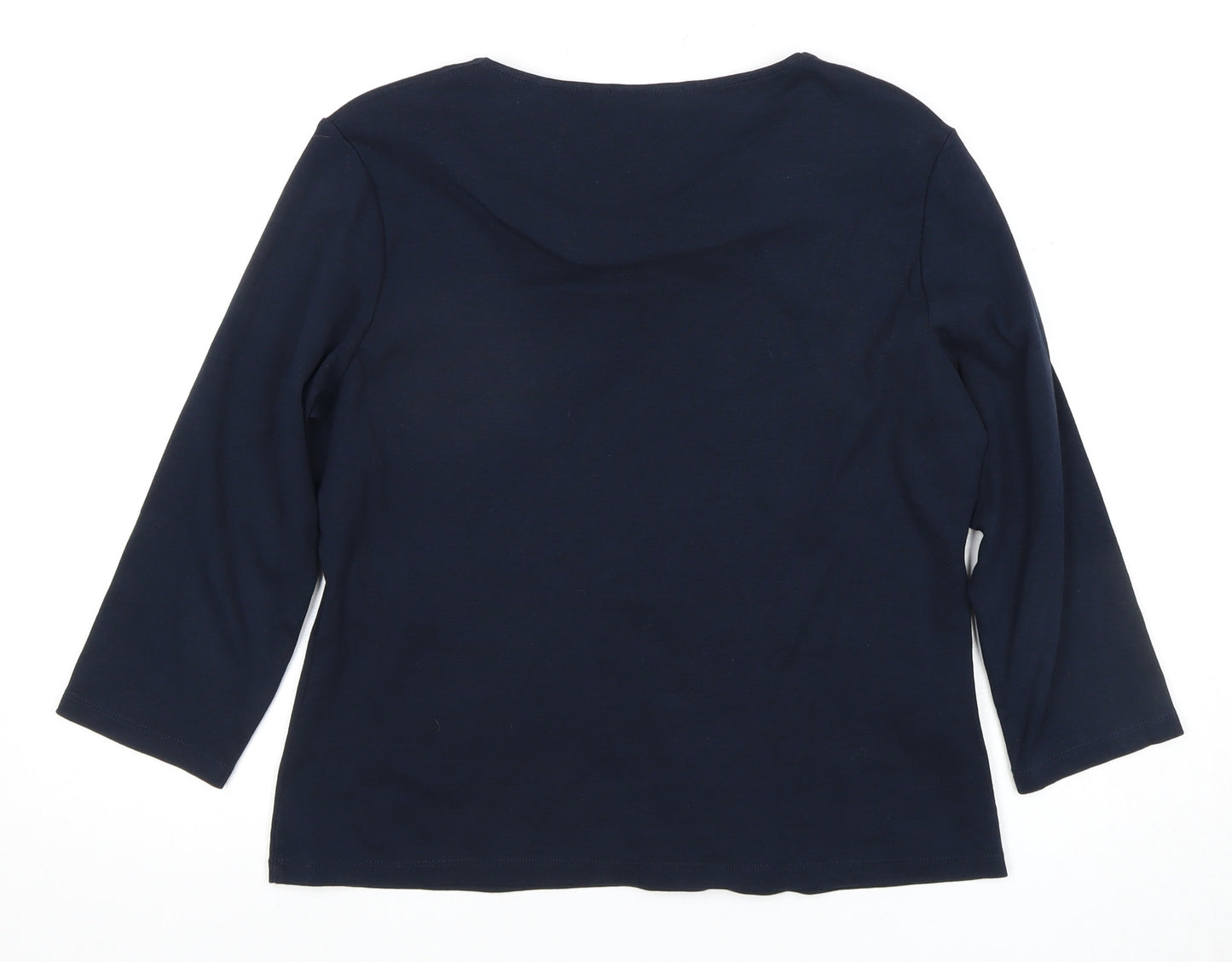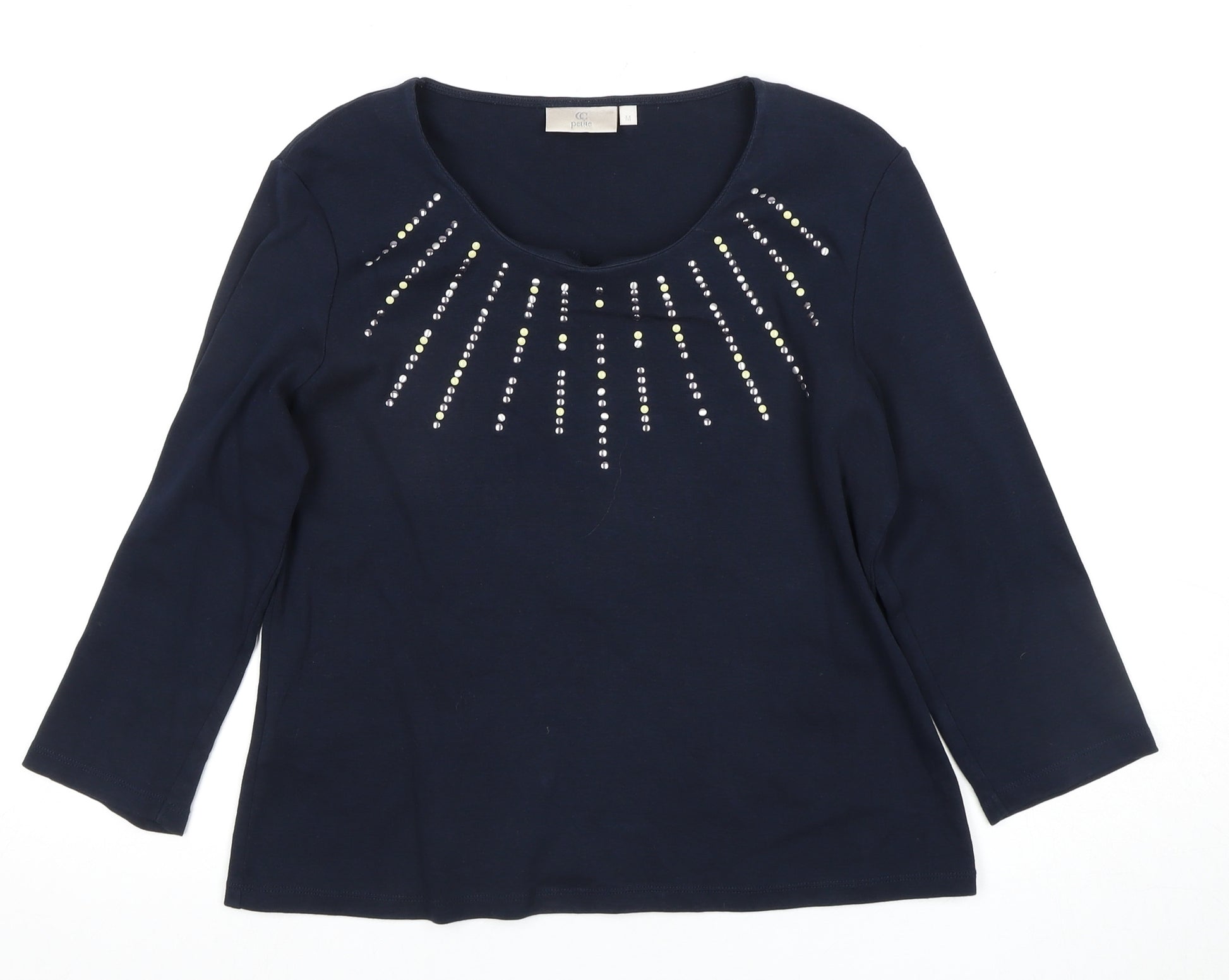 Enhance your wardrobe with this stylish CC Petites women's blue top, designed for both comfort and style. Made from 100% cotton, this top promises to offer breathable comfort all day long. The scoop neckline elegantly frames your collarbone, adding a touch of sophistication, while the eye-catching studded accents deliver a shimmery edge to your outfit. Perfect for spring and autumn, its 3/4 sleeves make it an ideal choice for those transitional seasons, keeping you cosy without being too warm. With a solid pattern and regular fit, this top is versatile, suiting a variety of casual occasions. Whether heading to a weekend brunch or a casual meet-up with friends, this top is sure to make a chic statement. Additionally, the top is machine washable, making it easy to maintain. Crafted for petite sizes, it ensures a comfortable and flattering fit for women of shorter stature. With no visible signs of wear, its excellent condition makes it a fantastic addition to any wardrobe. Don't miss out on adding this fashionable top to your clothing collection.