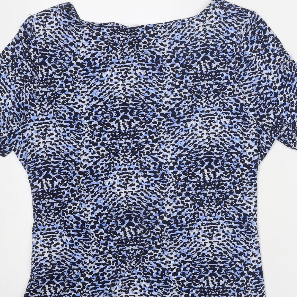Womens Blue Geometric Polyester Basic T-Shirt Size L Round Neck