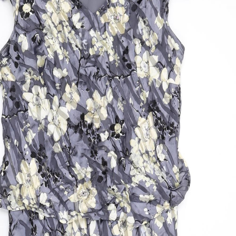 Womens Grey Floral Viscose A-Line Size 16 V-Neck Pullover