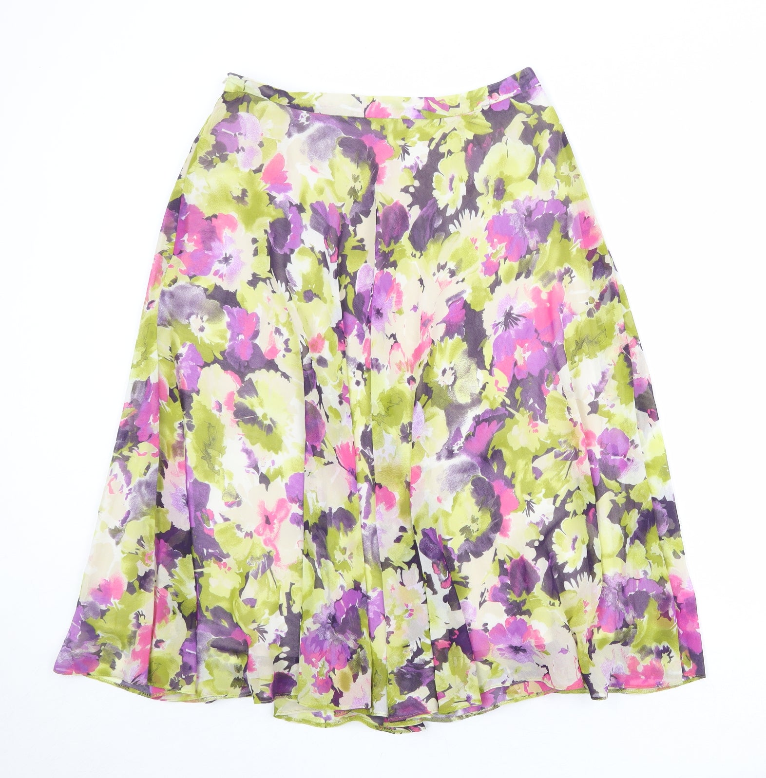 Womens Multicoloured Floral Polyester Swing Skirt Size 12 Zip