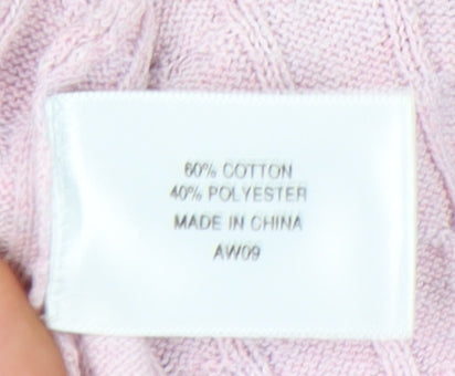 Womens Pink V-Neck Cable-Knit Cotton Blend Jumper L