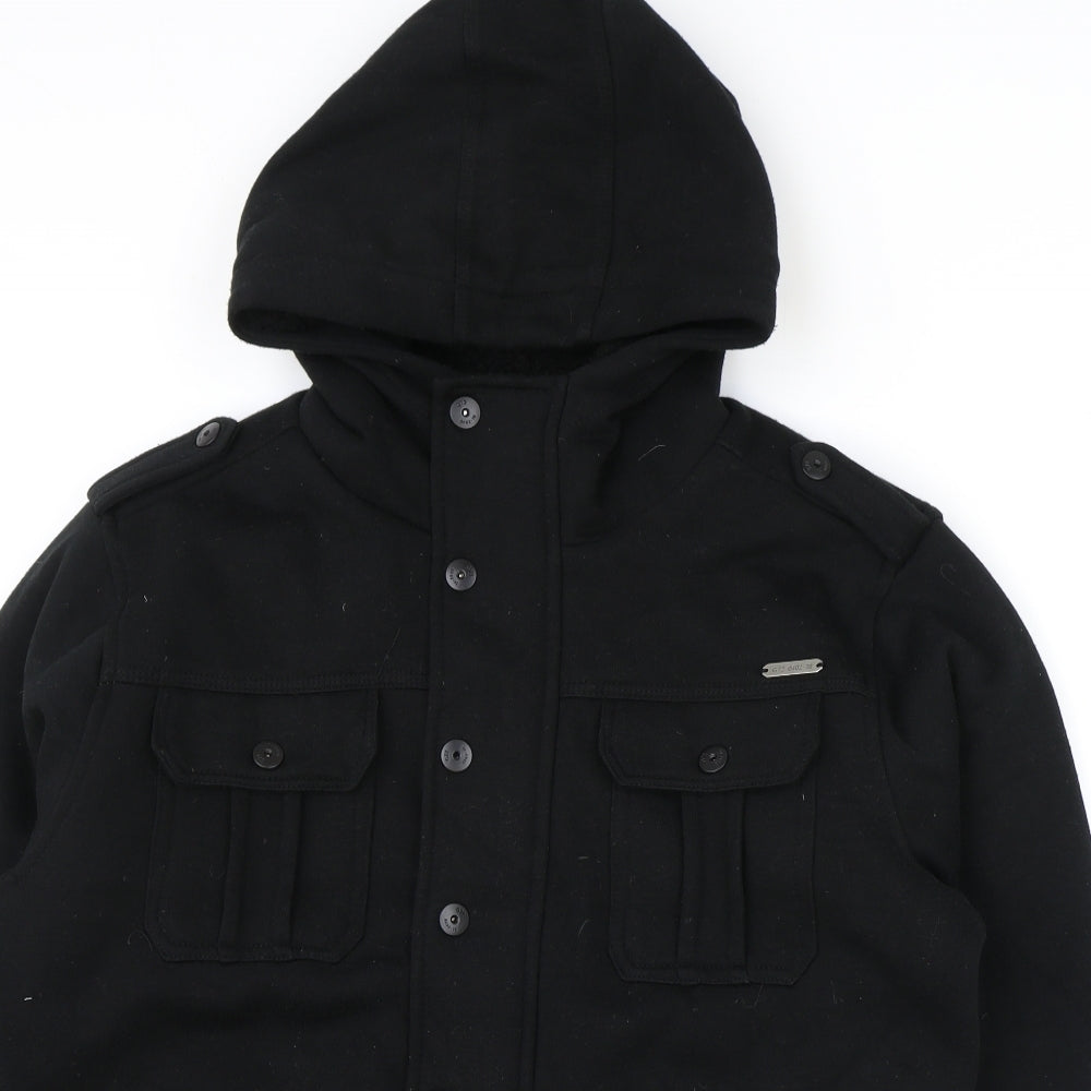 Jasper Conran Men's Black Wool Blend Pea Coat Size L Winter Jacket