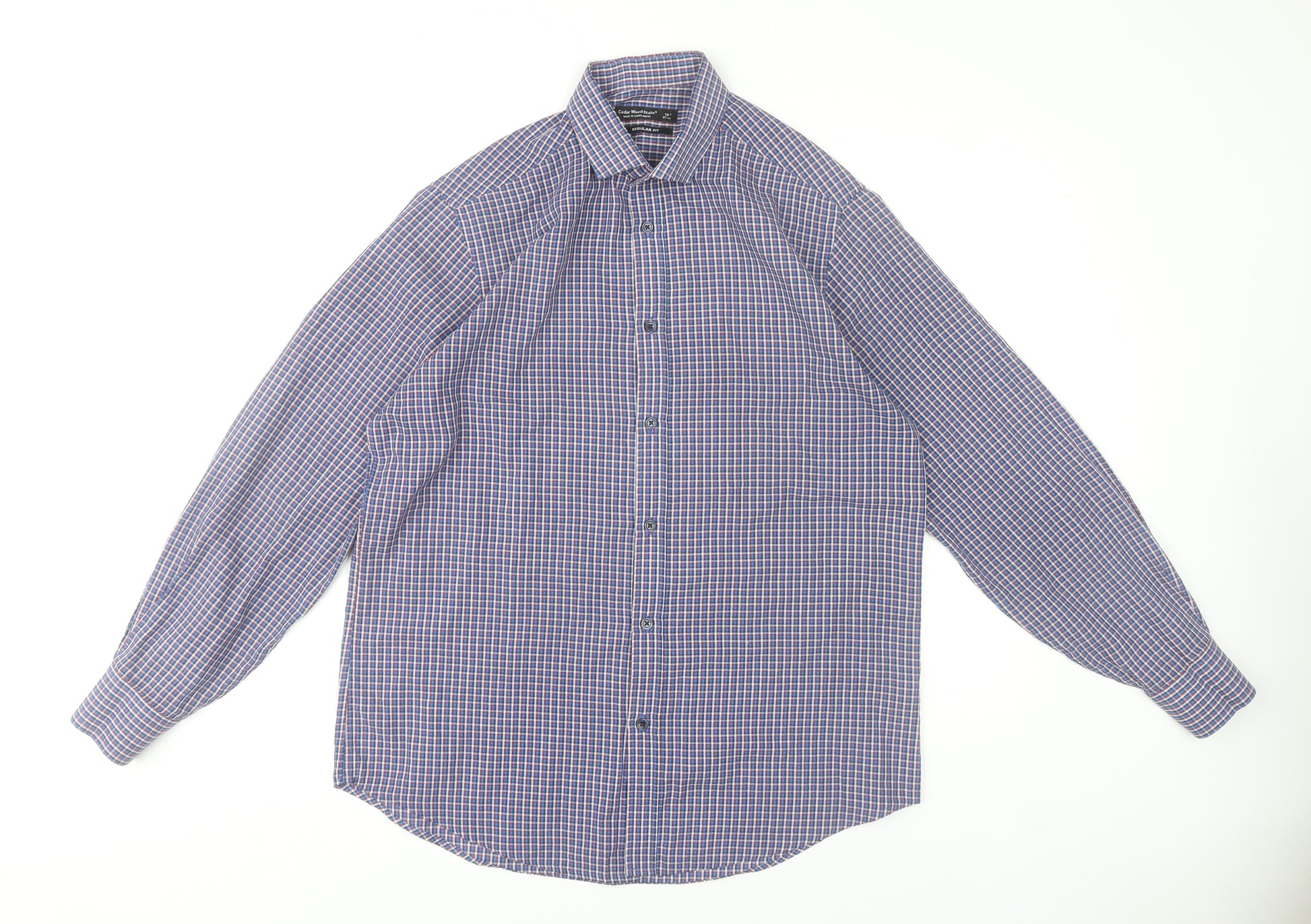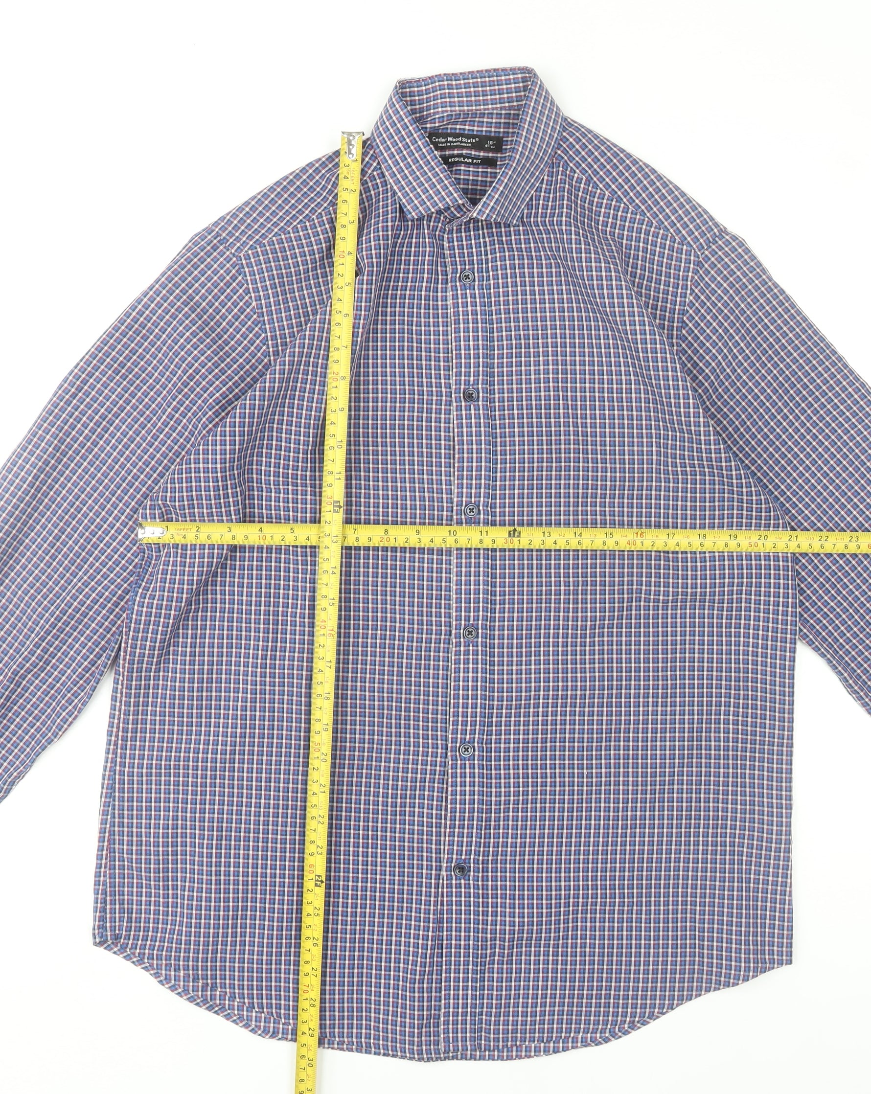 Step into timeless sophistication with this Cedar Wood State men's formal shirt, perfect for both business and smart-casual occasions. Crafted from 100% cotton for exceptional comfort and breathability, this lightweight dress shirt offers all-day ease while maintaining a crisp appearance. The classic blue check pattern pairs effortlessly with suits or smart trousers, making it an ideal choice for office wear, formal events, or relaxed evenings out. Featuring a Regular Fit design, it provides a comfortable silhouette that allows easy movement without compromising on style. The neat collared neckline, full button closure, and long sleeves finished with barrel cuffs lend a polished finish suitable for professional or social environments. The shirt’s woven cotton fabric ensures softness against the skin while staying resilient and easy to maintain. Practical features such as its breathable and easy-care fabric make this shirt both convenient and reliable in everyday use. Designed with traditional detailing including secure buttons and structured collar, it embodies modern simplicity with a nod to classic tailoring. The understated check design in shades of blue with subtle red and white accents allows effortless coordination with blazers, chinos, or tailored trousers. Whether worn tucked-in for a formal presentation or paired with jeans for a more casual appeal, this versatile piece enhances your wardrobe with refinement and contemporary charm. Perfectly suited for workwear, meetings, or semi-formal gatherings, it delivers a smart, confident look every time. With light signs of wear and clean cotton fabric, this shirt remains in very good condition—ready for many more occasions. Add a touch of classic appeal to your collection with this Cedar Wood State Regular Fit Checked Dress Shirt.