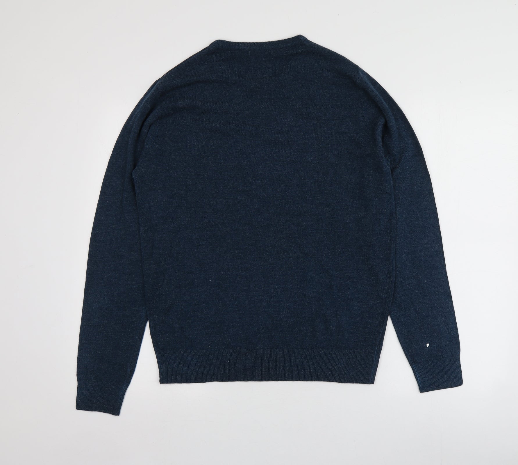 Mens Blue Round Neck Acrylic Pullover Jumper Size M