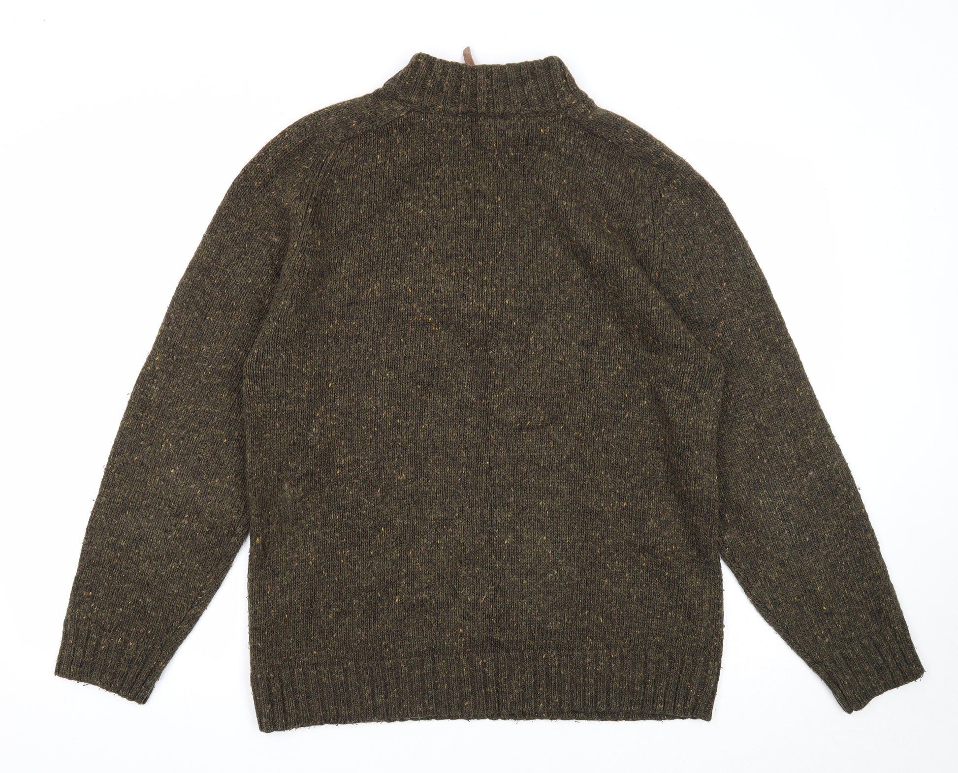 Mens Green High Neck Acrylic Pullover Jumper Size XL