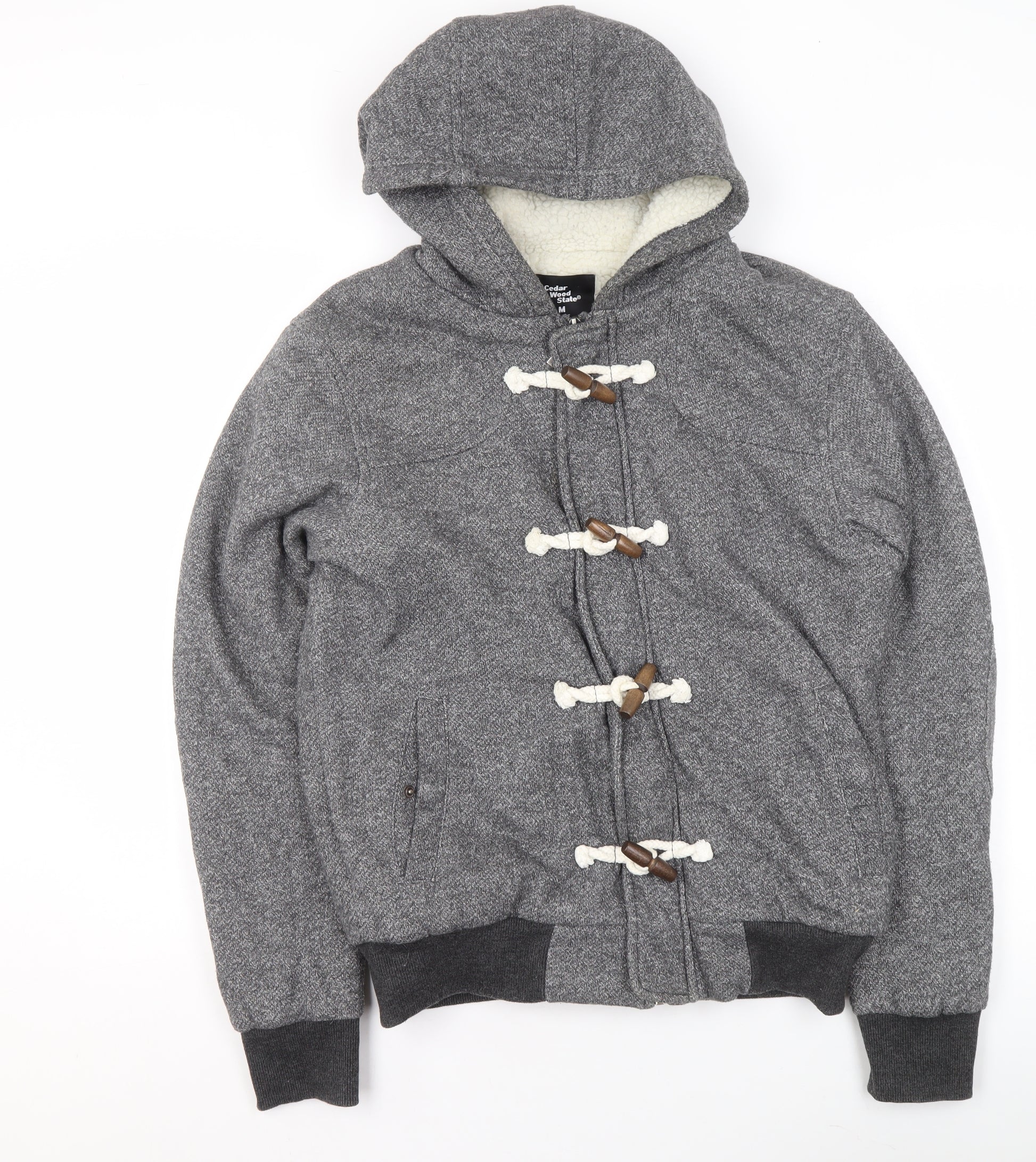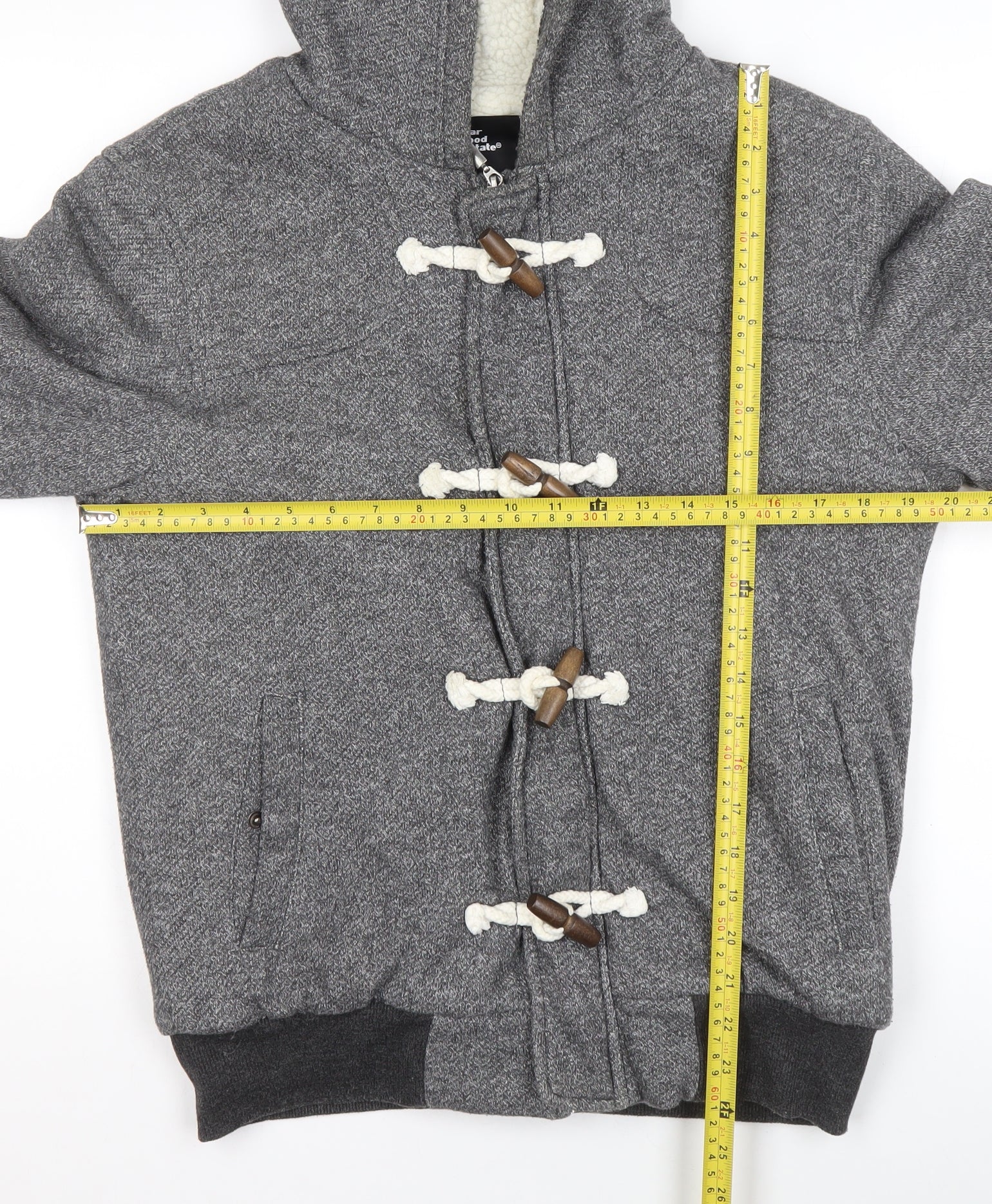 This Cedar Wood State men’s grey hooded toggle hoodie offers both warmth and casual style, perfect for cooler autumn and winter days. Designed in a medium size with a regular fit, it features a soft fleece-style inner lining that delivers exceptional comfort. The pullover hoodie comes with distinctive toggle-style wooden button fastenings, adding a rustic and timeless touch to your everyday outfit. The dark grey knit-look outer and ribbed hem and cuffs contribute to a comfortable and secure fit without compromising on style. Made from a durable blend of 65% polyester and 35% cotton, this fabric provides both softness and strength while maintaining breathability. The hoodie includes convenient side pockets for keeping hands warm or carrying small essentials, making it ideal for casual outings or staying cosy at home. The heavyweight lining ensures insulation against colder temperatures, while the overall design retains a classic and versatile appeal that easily pairs with jeans, joggers, or chinos. Subtle yet practical, it’s a great layering option that balances warmth and style. Machine washable for easy care, this piece is both tactile and durable for long-term wear. Although gently used, it remains in excellent condition with no visible flaws or damage, ensuring the next owner can enjoy this comfortable hoodie for many more seasons. A wardrobe staple that delivers everyday practicality with a touch of timeless design, the Cedar Wood State men’s grey hooded toggle hoodie is a must-have for those who appreciate quality, comfort, and classic casualwear. Whether you’re heading outdoors, running errands, or lounging at home, this hoodie guarantees an effortlessly stylish yet cosy look for autumn and winter wear.