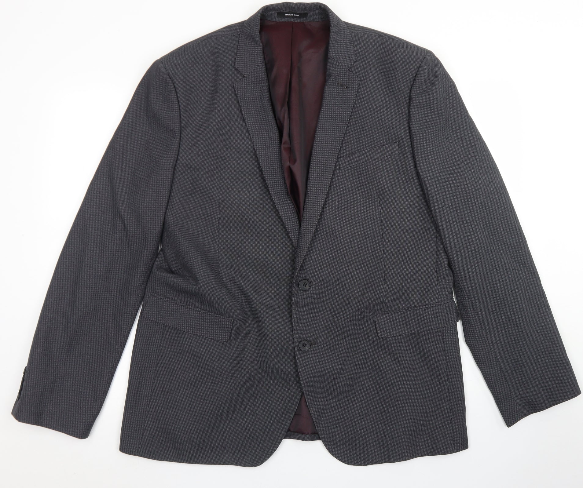 Mens Grey Polyester Jacket Blazer Size 44 - Tailored Fit