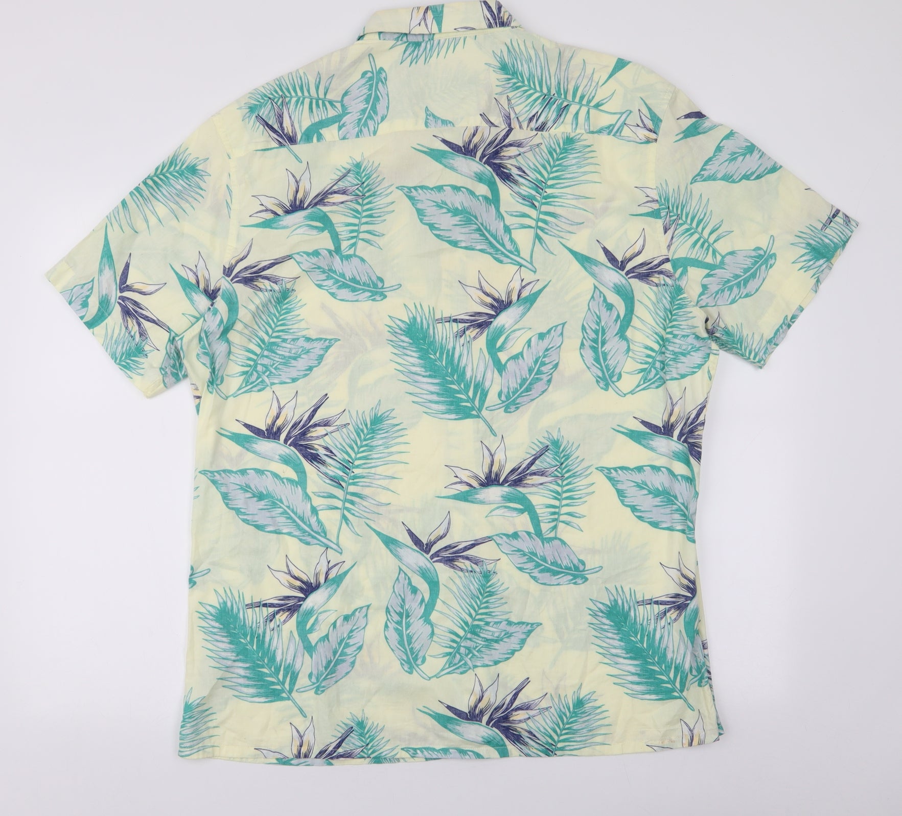 Mens Multicoloured Floral Cotton Button-Up Size XL Collared Button